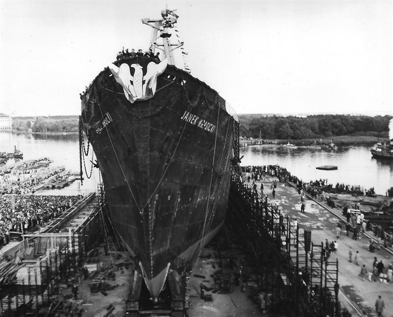 Wcześniej pełnił już ważne funkcje w stoczniach Trójmiasta. W Stoczni Gdańskiej pracował m.in. przy „Sołdku”, a w Gdyni był dyrektorem Stoczni im. Komuny Paryskiej. Wraz z gdańszczaninem, docentem i późniejszym profesorem – Jerzym Doerfferem – E. Skrzymowski kierował zespołem, który przygotował koncepcję stworzenia na Wulkanie nowoczesnego ośrodka kadłubowego zdolnego do konkurencji ze stoczniami zachodnimi. Po odbudowie ośrodek miał dwie pochylnie. Dodajmy, że dyrektorem stoczni był wtedy słynny Henryk Jendza. Pierwszym zwodowanym statkiem był 29 września 1959 roku „Janek Krasicki” (na zdjęciu).