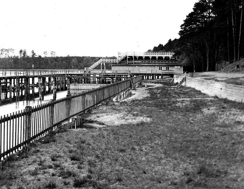 Poznajecie? To szczecińskie Jezioro Głębokie tuż po wojnie - widok na prawo od dzisiejszego wejścia. Po pomostach nie ma już śladu. Nad widocznym w głębi zejściem działała od końca XIX wieku - niewidoczna, bo ukryta za sosnami - restauracja Glambecksee z werandami i wielopoziomowymi tarasami. Dookoła jeziora - tak jak i dzisiaj - biegł szlak spacerowy.