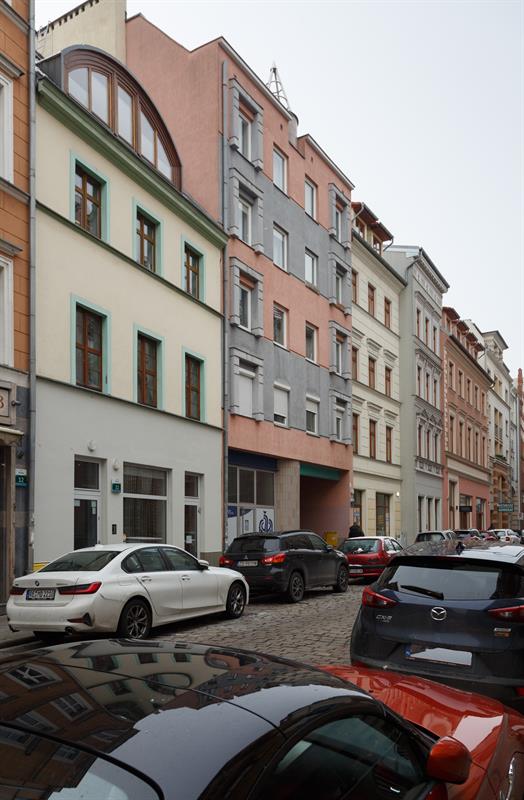 Wojna zrujnowała położone nad Odrą zabudowania Szczecina. Oberwało się również nieco dalej położonym ulicom. Jedną z nich była ul. Tkacka o średniowiecznym rodowodzie. Część przedwojennych budynków została zniszczona podczas alianckiego nalotu w 1944 roku. Ocalały tylko kamienice w rejonie dzisiejszego placu Żołnierza Polskiego i ul. Łaziebnej. W efekcie – w zależności od stanu technicznego – niektóre wyremontowano, inne rozebrano. Natomiast rozbiórka widoczna na zdjęciu odbyła się wiele dekad po wojnie – pod koniec lat 90. ubiegłego wieku. Wzdłuż ulicy pojawiły się odświeżone fasady oraz plomby. W kolejnych latach w rejonie ul. Tkackiej wyrosło kilka nowych budynków, m.in. Brama Portowa I i Czarna Perła.