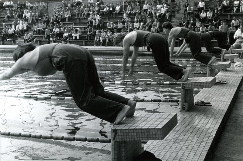Takie zawody pamiętają tylko najstarsi szczecinianie. Odbywały się dawno, dawno temu, w latach 50. i 60. ubiegłego stulecia na otwartym basenie Morskiego Klubu Sportowego Pogoń przy ul. Twardowskiego i, co widać na zdjęciu, przyciągały licznych kibiców. Najbardziej zaskakują oczywiście stroje rywalizujących zawodniczek. Delikatnie mówiąc – niezbyt eleganckie i nieułatwiające pływania. Ale cóż, takie były czasy i sportowa moda. Ówczesne pływackie, nazwijmy to… kostiumy na pewno nie ułatwiały osiągania rekordowych wyników, ale były sprawiedliwe, bo – co potwierdza także nasze zdjęcie – miały je wszystkie zawodniczki. A swoją drogą, bardzo ciekawi nas data wykonania tego zdjęcia. Może któryś z naszych Czytelników to wie?