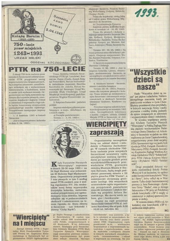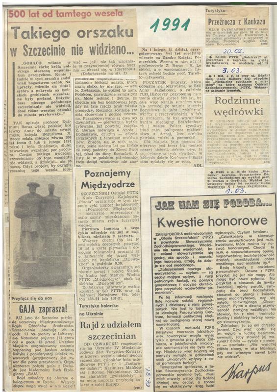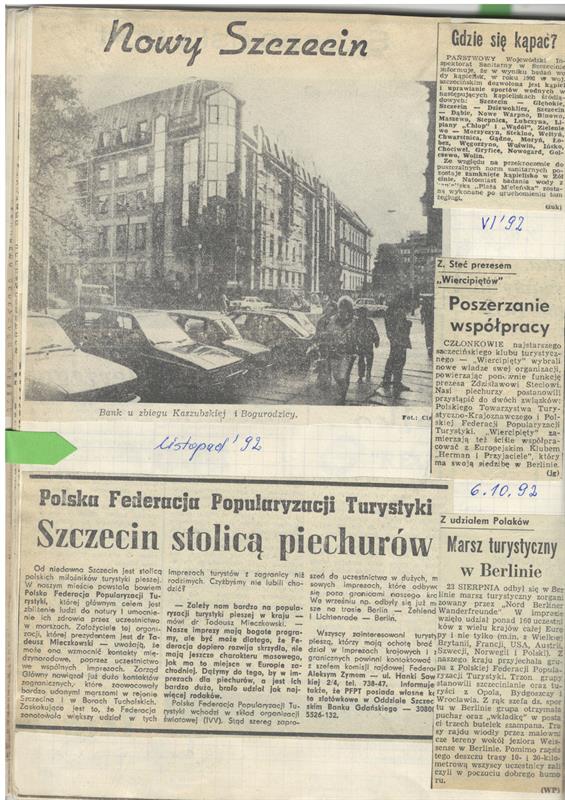 Terenowy Referat Weryfikacyjny - kolejna moja aktywność, czyli przyznawanie turystycznych odznak OTP [Odznak Turystyki Pieszej], a to wiąże się z dyżurami w biurze koło ”Pasztecika” szczecińskiego, czyli ROS PTTK (Regionalny Oddział Szczeciński PTTK), ul. Wyszyńskiego. Tu spotykamy się… lub nie, bo często zamknięte jest. I obecny zarząd nie rozumie jak zdobywać pieniądze, klientów, popularność. Nowy ”pogodny” Szczecin ma być wizytówką miasta, według wybitnych specjalistów w branży. On jak ja - mobilne centrum informacji turystycznej i kulturalnej, i oświatowej, i wszelakiej...