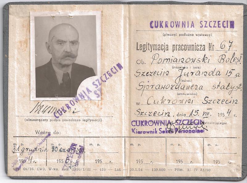 Legitymacja pracownicza Bolesława Pomianowskiego. Fot. archiwum Marek Karolczak