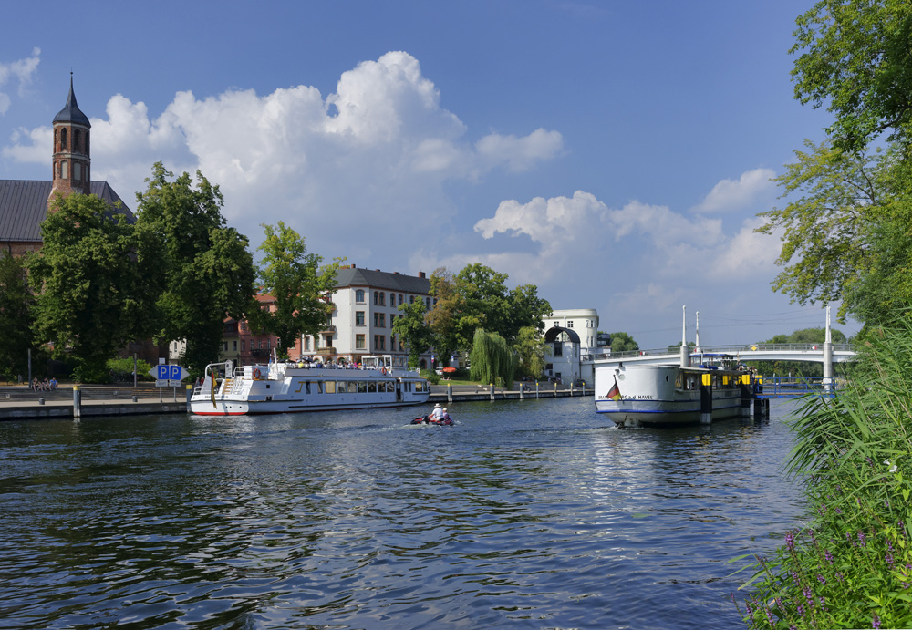 Podążając dalej wzdłuż Haweli, docieramy do miasta Brandenburg an der Havel, gdzie rzeka wraz ze swoimi dopływami łączy trzy historyczne miasta wyspiarskie. Najstarsze z nich to Dominsel – centrum osadnicze o ponad 1000-letniej historii. Miasto to jest uważane za „bramę” do największego w Europie obszaru połączonych wód śródlądowych tworzących idealne warunki do uprawiania sportów wodnych. Amatorzy żeglugi mogą tu bez konieczności poprawy posiadania patentów wynajmować łodzie mieszkalne i pływać po jeziorach i kanałach tworzących wyjątkowy krajobraz Haweli. Nawet zabytkowe centrum miasta można zwiedzać z powierzchni wody. Brandenburg an der Havel jest trochę podobne do Poczdamu, z tym że zamiast wielu pałaców ma liczne kościoły. Będąc tutaj, warto również zwiedzić Państwowe Muzeum Archeologiczne i Muzeum Przemysłu.