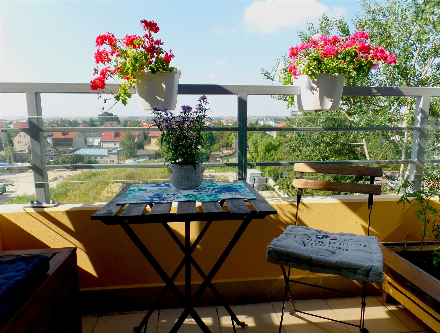 Mieszkanie ma ekspozycję południowo-zachodnią, więc niemal od godz. 11 tonie w słońcu. Co ma swoje dobre strony, bo jest ciepłe i jasne, pełne dobrej energii. Jednak słońce stanowi również o ostrej selekcji roślin na balkon - ograniczając pasję domowej ogrodniczki.