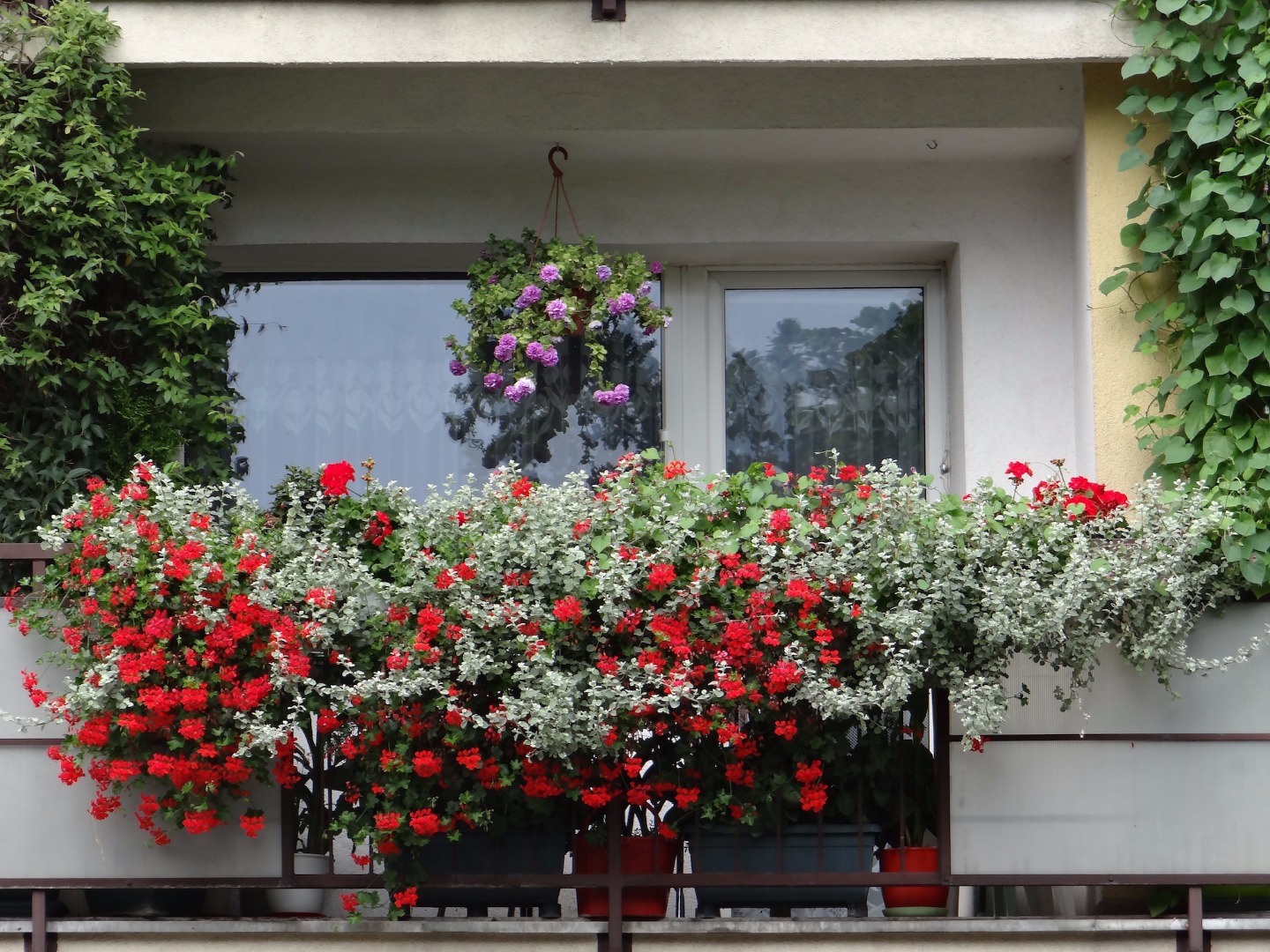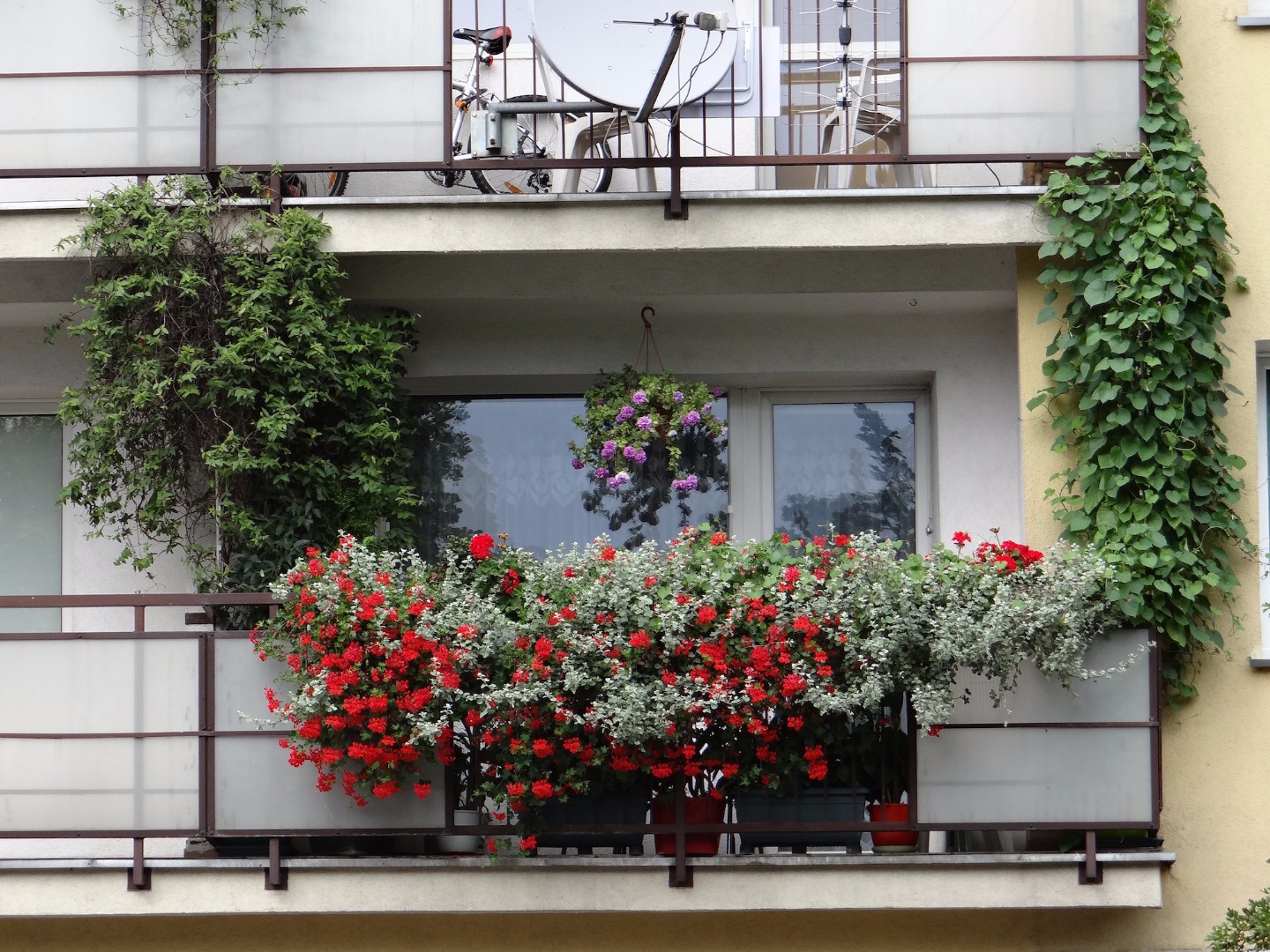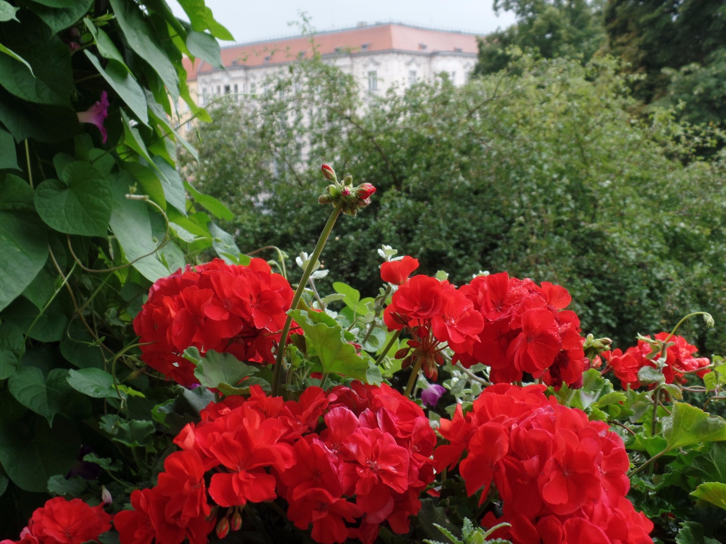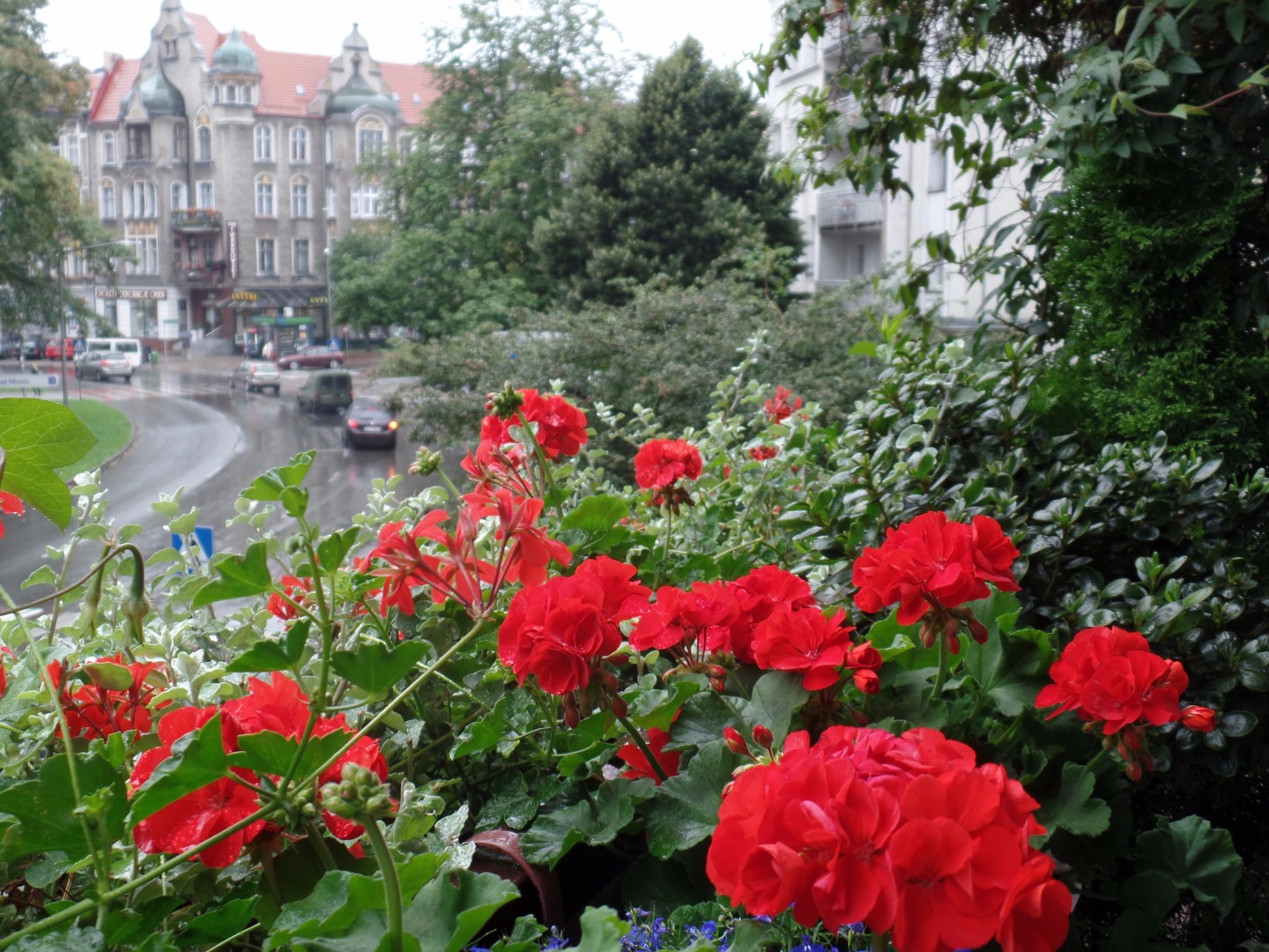 Za oknem zielone ściany z powojników i wiciokrzewu. Czerwień pelargonii i surfinii, fioletowych dzwonków i petunii. Tłem dla nich wysokie drzewa: lipy, klony, świerki. Nie sposób zgadnąć, że taki widok można mieć z mieszkania położonego w jednym z newralgicznych punktów miasta - szczególnie dla ulicznego ruchu - przy pl. Grunwaldzkim.