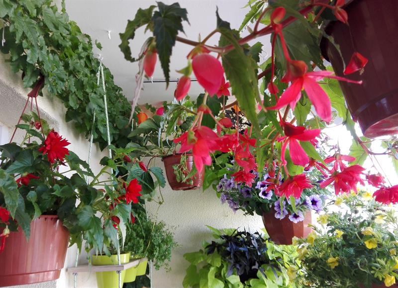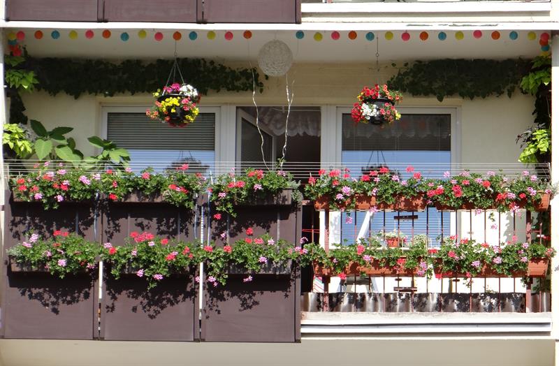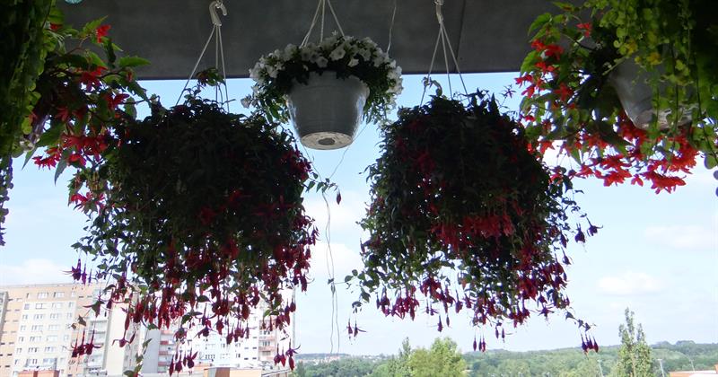Okna ich mieszkania w bloku od strony balkonu wychodzą na zachodnią stronę osiedla z widokiem na pobliską halę widowiskowo-sportową. Nie ta ostatnia jednak przyciąga wzrok przechodniów i sąsiadów. Od wiosny do jesieni znakiem rozpoznawczym stają się kaskady z pelargonii odmian o różowych i czerwonych kwiatach, okrywających niemal szczelnie od frontu balustradę. Nie inaczej jest i w tym roku. To kwiaty wdzięczne, o wyjątkowych walorach dekoracyjnych, a w dodatku – co nie bez znaczenia – doskonale znoszące warunki klimatyczne na wysokościach i z racji usytuowania balkonu. Odporne na częste wiatry, a w ostatnich latach także wyjątkowo długie okresy suszy i promienie palącego słońca, kiedy na termometrze w najgorętszych porach dnia, popołudniami, zaczyna brakować skali.