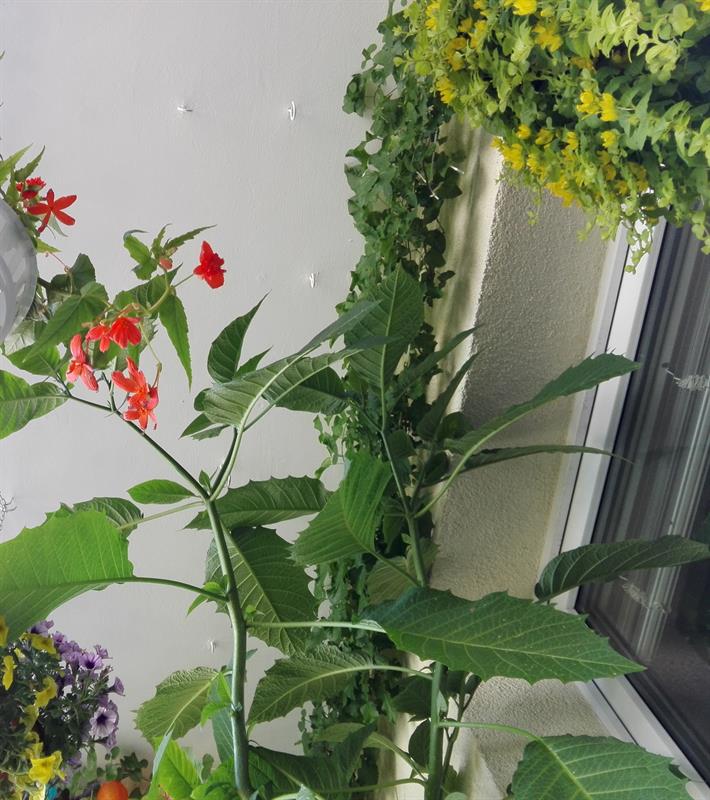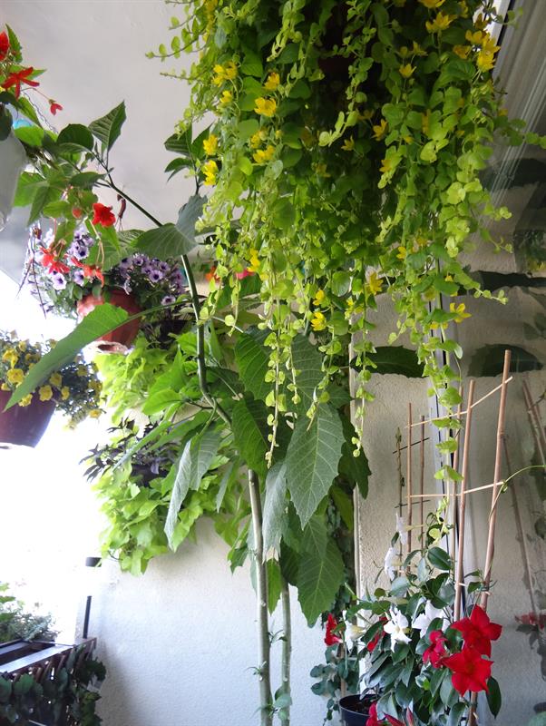– To są afrykańskie warkocze męża. Z racji ich długości i pokroju liści tak mąż zaczął je nazywać – dodaje Wanda Słodkowicz. – Kiedy pierwszy raz je zasadziliśmy i rosły jak szalone, wydając o wiele dłuższe pędy niż te, które są teraz, to je głaskał i od tamtej pory na balkonie muszą być co roku.