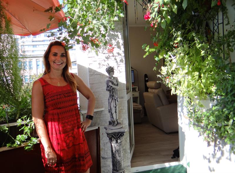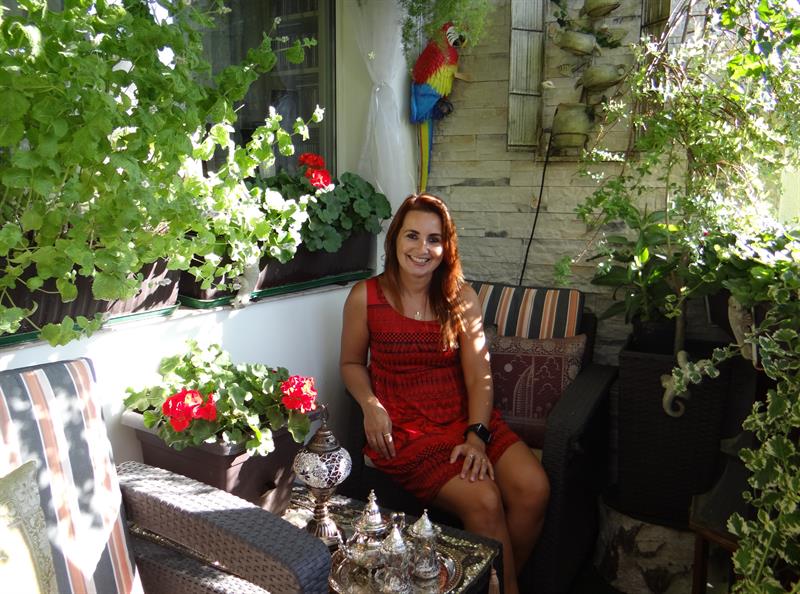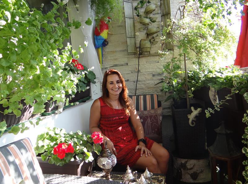 – W tym roku balkon jest w stylu arabskim. Jak zawsze. Są więc zwiewne firanki, naczynia, które poprzywoziłam z Maroka i z Turcji, do tego poduszki, serwetki haftowane z cekinami, na suficie podwieszona kurtyna świetlna, włączana wieczorami i lampa arabska, ale nie jest to lampa Aladyna, lecz typowa witrażówka. Też jedna z pamiątek z moich podróży. Swoje miejsce ma również kolorowa papuga – ta dla odmiany z hiszpańskiej wyspy Gran Canaria. A z nowych nabytków mogę pochwalić się posągiem nagiej greckiej bogini. To prezent od mamy. Choć taka zgrabna, to swoje waży, przy jej wnoszeniu na trzecie piętro mocno umęczyło się aż dwóch chłopa – śmieje się pani Beata, z wykształcenia organistka, a także germanistka (studiowała filologię słowiańsko-germańską na Uniwersytecie Szczecińskim i w Nauczycielskim Kolegium Języków Obcych), nauczycielka, ponadto realizatorka i autorka programów radiowych, aktualnie związana z Polskim Radiem i jego szczecińskim oddziałem, prowadząca audycje muzyczne.
