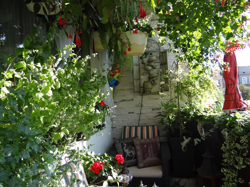 Na pewno wyróżnia się spośród innych. Od zewnątrz na elewacji bloku przy ul. Małopolskiej 57 wyróżnia go szczelnie okrywający standardową płytę balustrady kobierzec obficie kwitnących czerwonych pelargonii. Za tą zielono-kwiatową ścianą skrywa się azyl Beaty Użarowskiej. Każdego roku wyczarowuje go dla siebie na nowo, choć – jak sama mówi – nie brak w nim elementów stałych, sprawdzonych. Tak w wystroju, jak i w doborze do niego roślin. Nic więc dziwnego, że od wielu już lat to jeden z najpiękniejszych balkonów Szczecina, obsypany tyloma nagrodami, w tym zwycięskimi trofeami, że nawet gospodyni trudno dziś ich się doliczyć.
