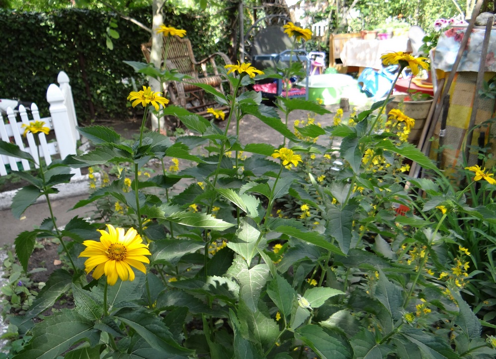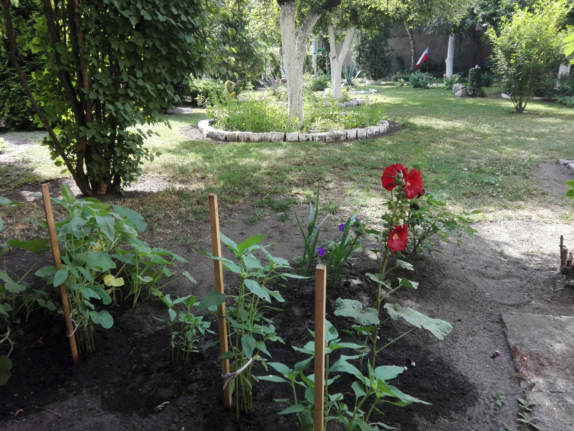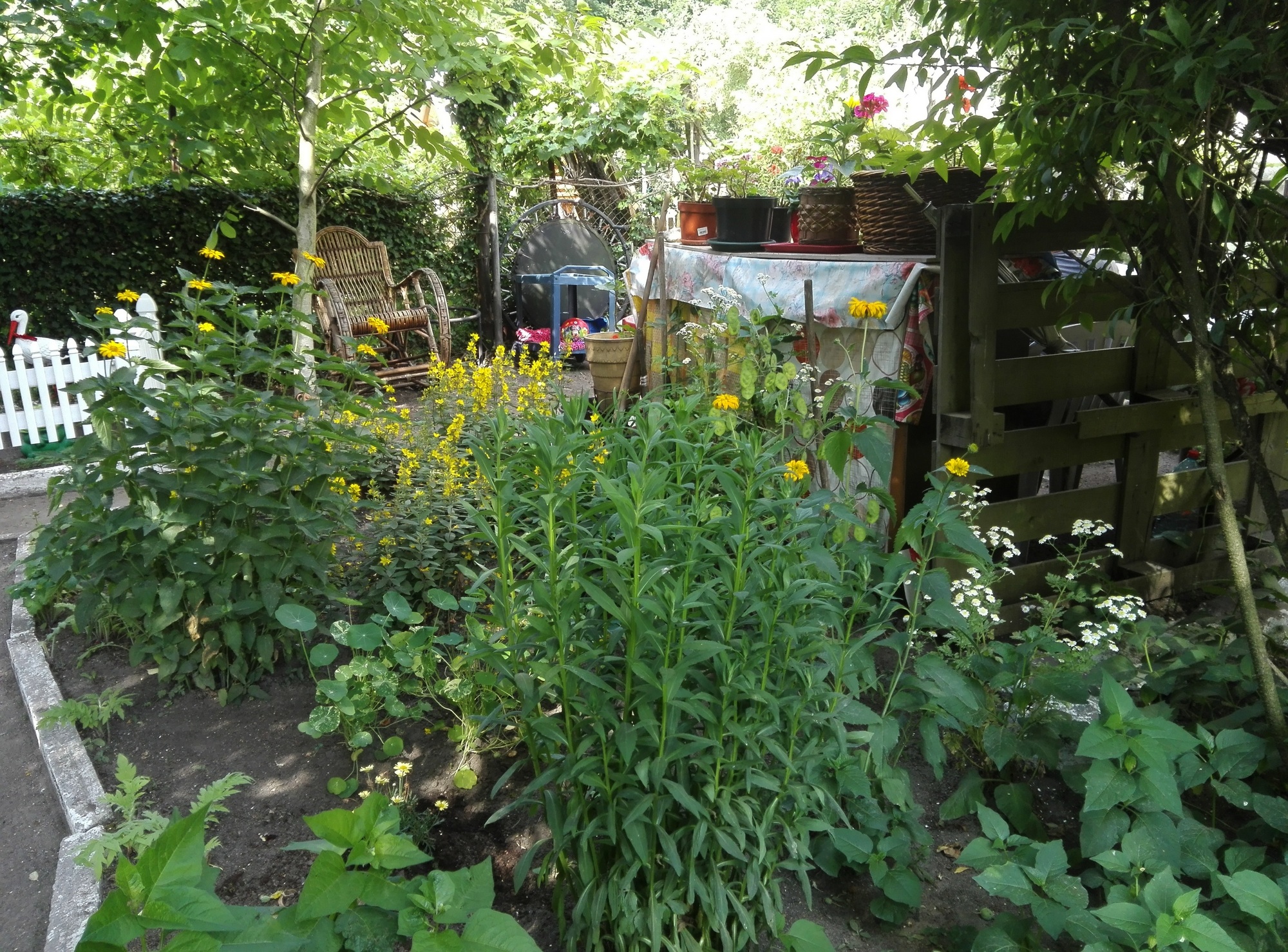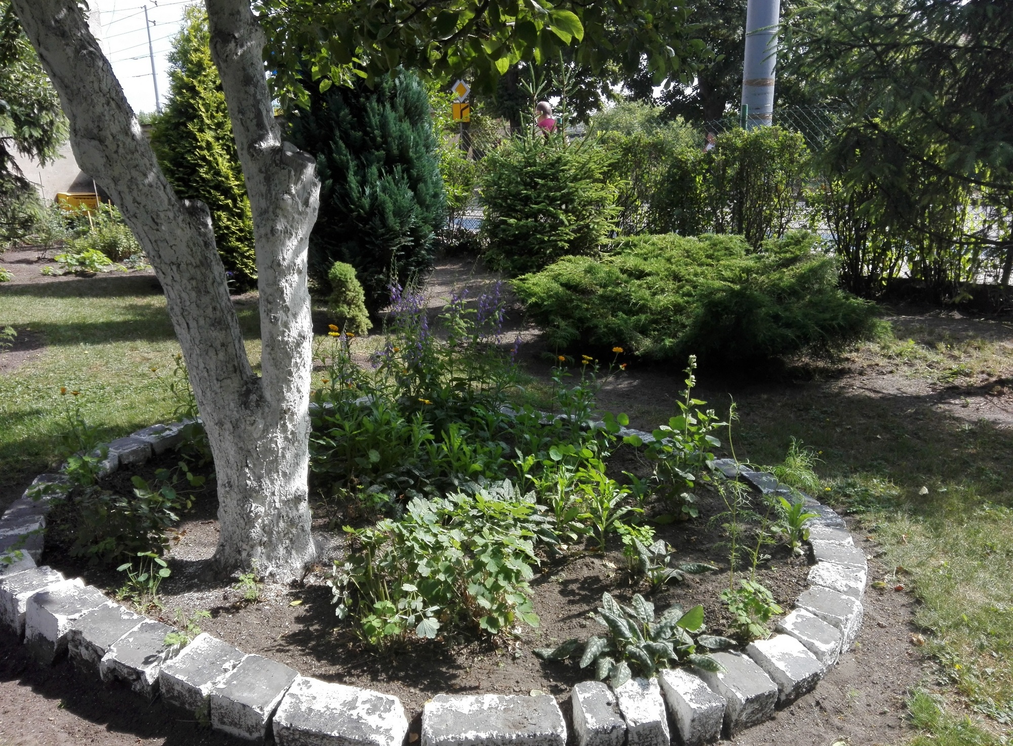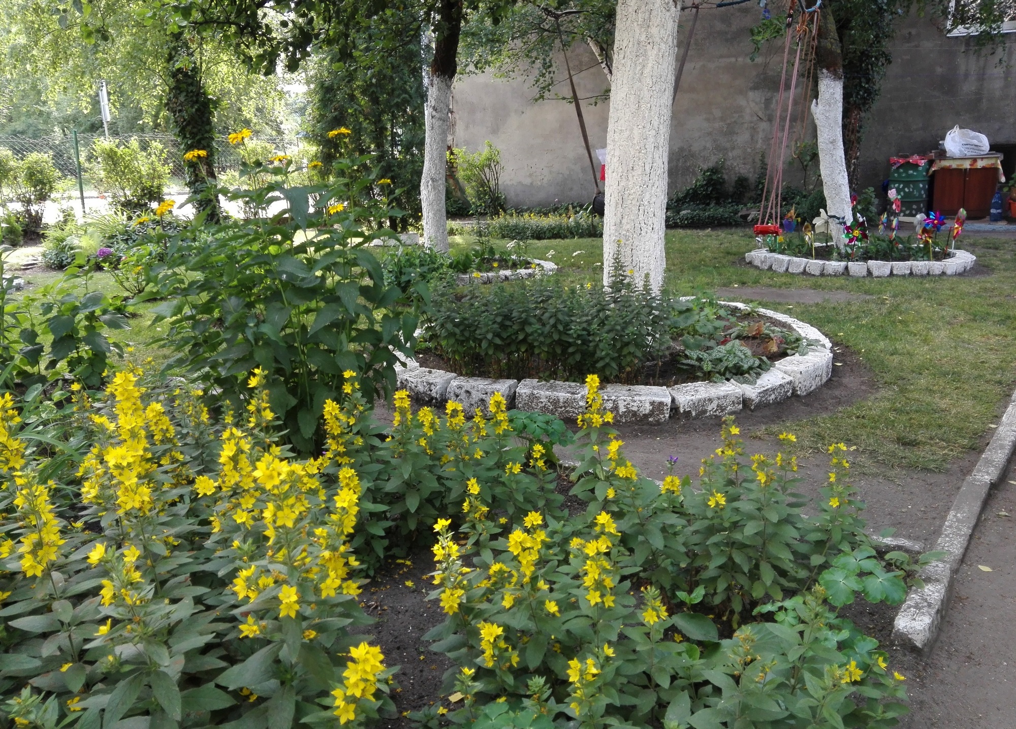Na kilkuset metrach kwadratowych między szarymi murami kamienic rosną strzeliste, sięgające już dachów, brzozy i świerki. Są jarzębina, bez, a kącik wypoczynkowy otaczają rozłożysta forsycja i orzech włoski. Pod tym ostatnim w cieniu, dla relaksu między pieleniem i podlewaniem, stoi wiklinowy bujany fotel. Do tego winorośl i poletko wschodzącego pachnącego groszku, który wkrótce obsypie się kwiatami, tworząc barwną i pachnącą ścianę. A całość uzupełniają rabaty wokół drzew z kobiercami dziurawca, złocieńców, rudbekii, bezwonnej maruny nadmorskiej, okazy żurawek, agaw, przyciętych w kulki bukszpanów i aksamitki. ©℗