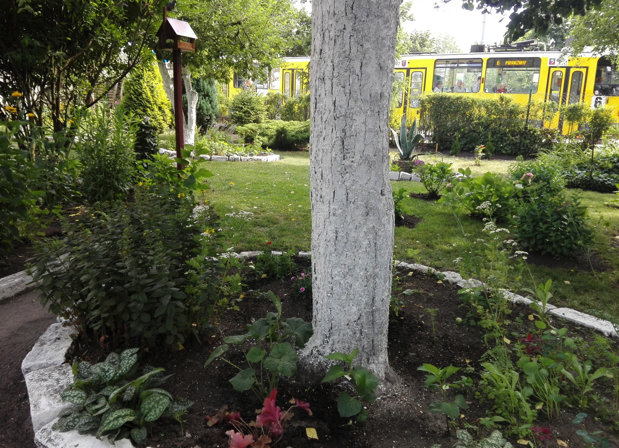 Skrywa się między dwoma kamienicami z odrapanymi murami, pozostałościami przedwojennej zabudowy. W plac, gruzowisko po tej, którą już zdążył zdmuchnąć wiatr historii, między ich ściany szczytowe wcisnęła się ta zadrzewiona, kipiąca zielenią enklawa ku radości nie tylko pani Grażyny Talarek, która ją stworzyła i od lat stara się systematycznie doglądać. Cieszy też oczy znajomych i sąsiadów.