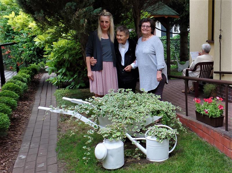 - Ogród jest dla nas nie tylko miejscem rekreacji i wypoczynku, ale przede wszystkim ulubioną zielną przestrzenią terapeutyczną: tu odbywamy zajęcia holikuroterapii. Seniorzy pielęgnują rośliny, sadzą, podlewają, koszą trawnik, przycinają pędy krzewów, upinają pnącza. Spełniają się w ogrodnictwie, korzystają z uroków kojącej zieleni, ale również ją upiększają. Wszystkie pojemniki i ozdoby to ich pomysły i dzieło - opowiada Małgorzata Wróblewska, kierująca placówką.