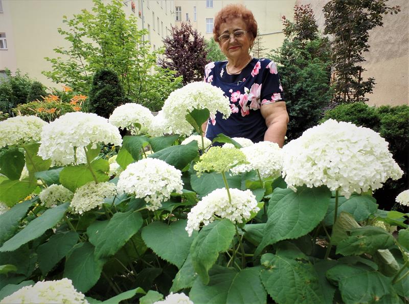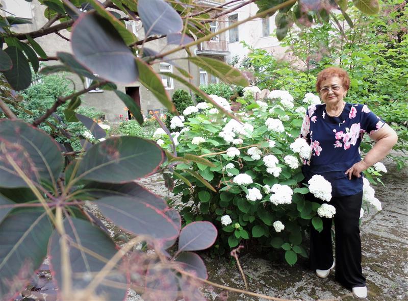 - Nie ma co wspominać dawnego koszmaru: zalanego betonem podwórka, przechodniego dla kilku sąsiednich kamienic, stąd zawładniętego przez wiecznie biesiadujących meneli. Liczy się to, jaki mam teraz widok z okna parterowego mieszkania: tętniący życiem ogród, do którego z przyjemnością zaglądają i ludzie, i ptaki - mówi p. Wanda. - Sąsiedzi zyskali zieloną oazę, pośród której mogą posiedzieć na fotelu czy ławce, a ja… poniekąd sens życia. Gdy jedni na stare lata odnajdują go w perypetiach serialowych bohaterów, więdnąc przed telewizorem, zamknięci w czterech ścianach, to ja zachwycam się rozkwitającą magnolią, perukowcem czy hortensjami, które zasadziłam własnymi rękami albo wyhodowałam z tyciej szczepki. Każdy dzień staje się niepowtarzalną przygodą, bo zawsze jest co przyciąć, posadzić, podlać. Fakt, że plecy bolą, ręce puchną, kolana odmawiają posłuszeństwa, ale czuję dumę i satysfakcję. W moim wieku takie emocje, spełnienie, to sukces!