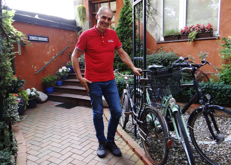 Podwórko w śródmiejskiej zabudowie nie musi być szare i brudne. Od lat udowadnia to Zbigniew Stankiewicz, dobry duch i opiekun na co dzień takiej studni na tyłach kamienicy przy al. Papieża Jana Pawła II 22.