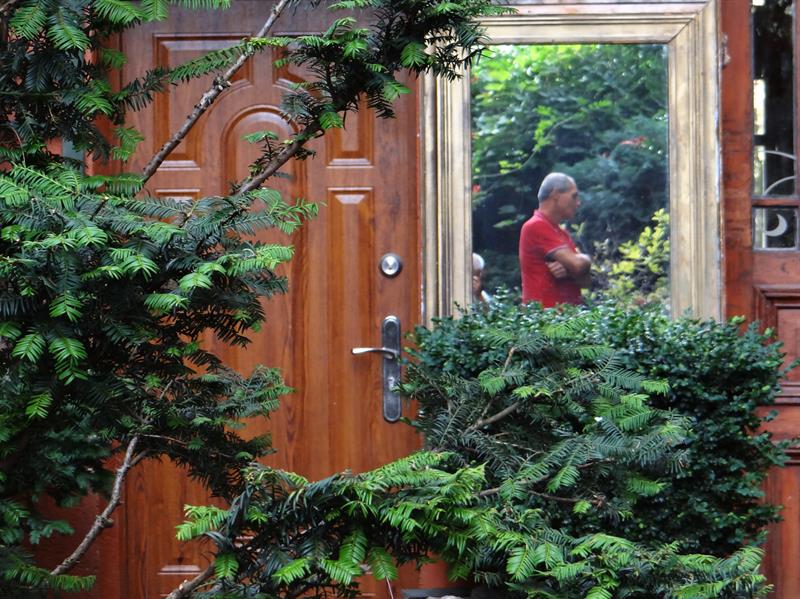 Uwagę przyciągają kolejne bujnie rozkrzewiające się ligustry zimozielone, trzmieliny i żywotniki, a także bukszpany. Żywotniki i bukszpany urosły już na tyle, że dają się ciekawie formować. Przez część podwórkowego ogrodu pan Zbigniew poprowadził dwie wyłożone otoczakami ścieżki, czerpiąc inspirację z jednego z przesłań filozofii Wschodu. Inną z nowości w stale zmieniającej się, kreowanej przez niego zielonej enklawie, ale zakładaną na stałe, są lustra, które mają optycznie powiększać i wzmacniać efekt przestrzenny. W jednym z nich, zamocowanym tuż przy drewnianych i przeszklonych skrzydłach bramy wjazdowej, przegląda się już ogród. Do powieszenia kolejnego z takich luster, znacznie większego i w ramie z odzysku, pan Zbigniew już się przymierza. ©℗