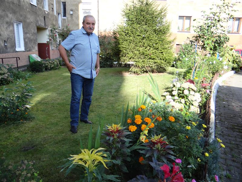 Pasję ogrodnika ze swej działki z powodzeniem od lat przenosił na przydomowe zieleńce wokół budynków Wspólnoty Mieszkaniowej Podkowa na szczecińskim Turzynie. Teraz już jako solista, bo chętnych brak jak i zainteresowania, by pielęgnować najbliższe otoczenie, przenosi ją niezmiennie, ale skupia się wyłącznie na skrawku podwórza na tyłach części nieruchomości przy ul. Legionów Dąbrowskiego 3.