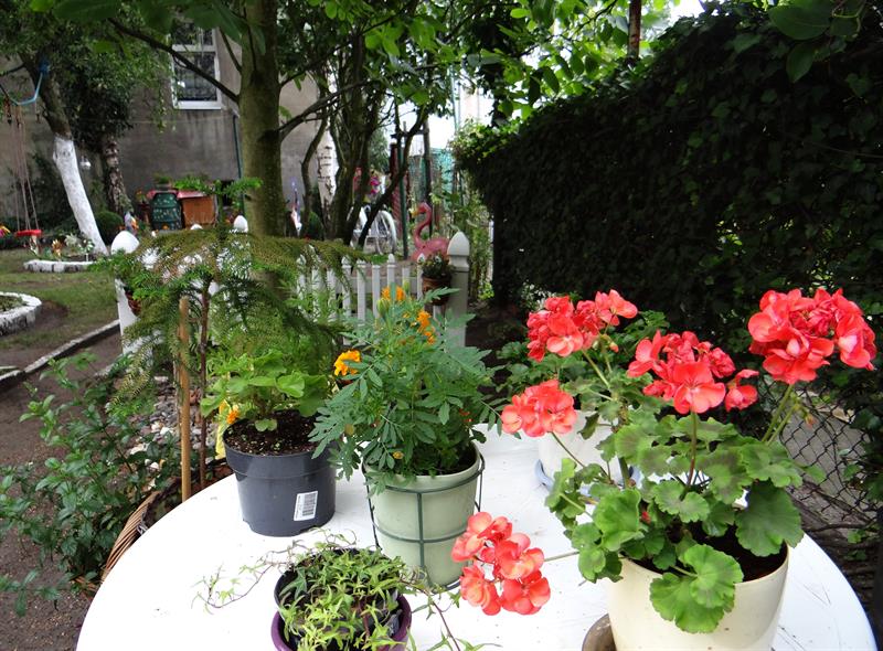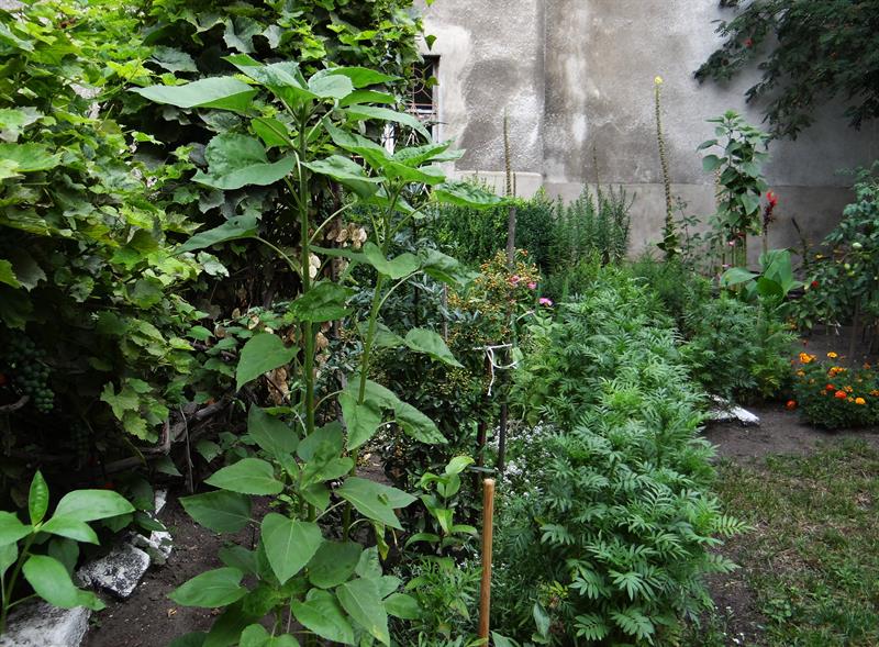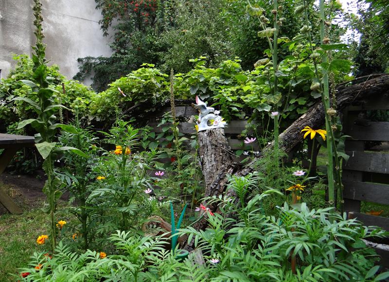 Działka-ogród wciśnięta jest między dwie kamienice z szarymi, odrapanymi murami, pozostałości przedwojennej zabudowy. Po kolejnych wyburzeniach było tam gruzowisko. W tym kawałku przestrzeni między ulicą i ścianami szczytowymi budynków pani Grażyna potrafi spędzać całe dnie. Nastraja pozytywnie nie tylko ją, ale przy okazji cieszy oczy znajomych i sąsiadów, przypadkowych przechodniów, którzy zaglądają często przez płot, czasem zrewanżują się dobrym słowem.