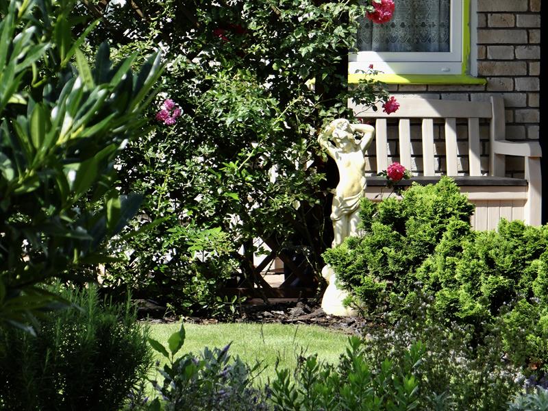 Symetria, dbałość o szczegóły, staranność i umiar w doborze roślin – tak w największym skrócie można scharakteryzować tę działkę, która jednak przypomina raczej minipark w Rodzinnym Ogrodzie Działkowym Krzekowo przy ul. Łukasińskiego. Jest dziełem Doroty i Tadeusza Seligów. Ich azylem od lat. Tu właśnie, na niewielkim kawałku gruntu w zacisznym wciąż rejonie na obrzeżach miasta realizują się ich ogrodnicze pomysły i pasja.