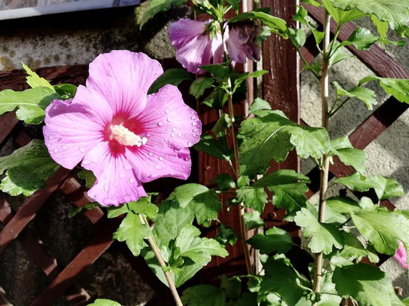 – W tym sezonie szczególnie właśnie hibiskusy okazują swą urodę. Udało mi się je rozmnożyć z nasion. Ten najokazalszy krzew zajmuje narożnik podwórza, kolejne, młodsze i nieco mniejsze też już rosną na wąskiej rabacie wzdłuż jednej ze ścian i są coraz większe i coraz obficiej kwitną. Niestety – część kwiatów niektórzy przechodzący obrywają. Nie wiem po co, bo są one delikatne i zerwane szybko więdną – zżyma się pan Jan.