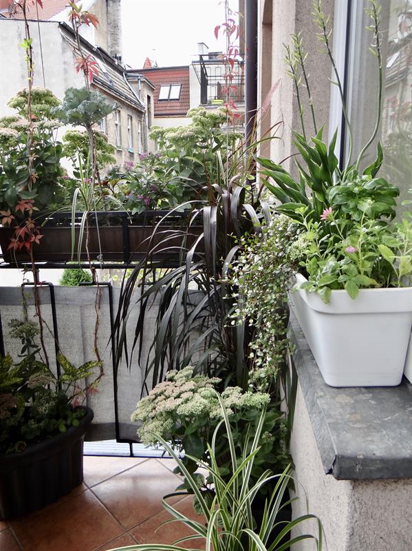 Balkon to nietypowy, bo dwupoziomowy, czyli dwa balkony jednego mieszkania w układzie jego wnętrz zaaranżowanych piętrowo. Dzięki temu pozwala puszczać wodze fantazji właścicielce Joannie Gredce. Pełen odcieni zieleni i kolorów zdobiących go roślin jest nieco schowany na tyłach budynku przy ul. Jana Kazimierza.
