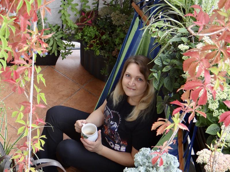 W balkonowej przestrzeni życiowej pani Joanny poza tym znalazło się miejsce na zagonik ziołowy. Są w nim mięty cytrynowa i pieprzowa, bazylia, oregano, szałwia, liść laurowy. Słowem: samo zdrowie. A w takiej scenerii i na hamak, w którym można zrelaksować się, czytając książkę czy popijać o pranku kawę. ©℗