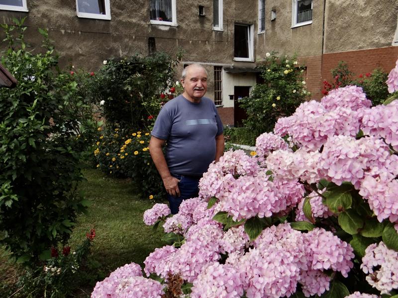 Podwórko Wspólnoty Mieszkaniowej Podkowa przy ul. Legionów Dąbrowskiego, o które dba Franciszek Konkolowski