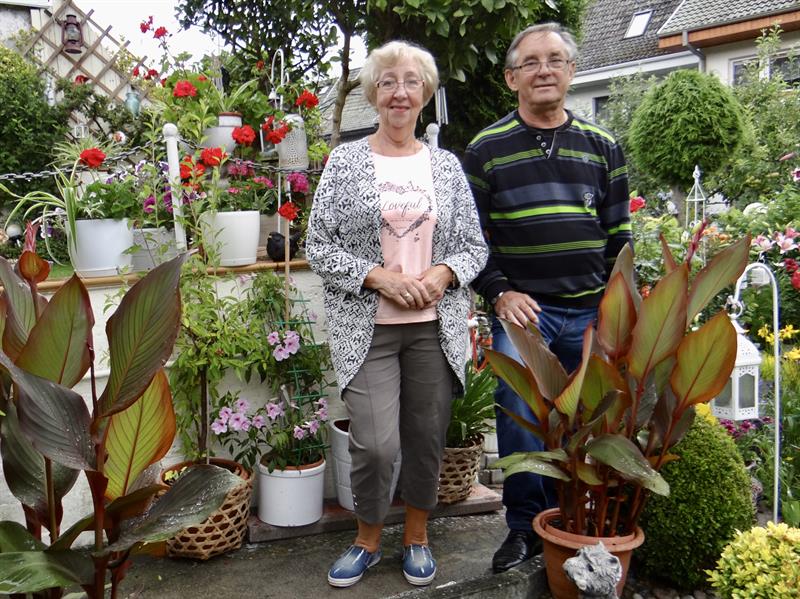 Na zdjęciu: Elżbieta i Jerzy Gajdul w swoim przydomowym królestwie kwiatów, które zwykli też nazywać prywatnym rajem na ziemi.