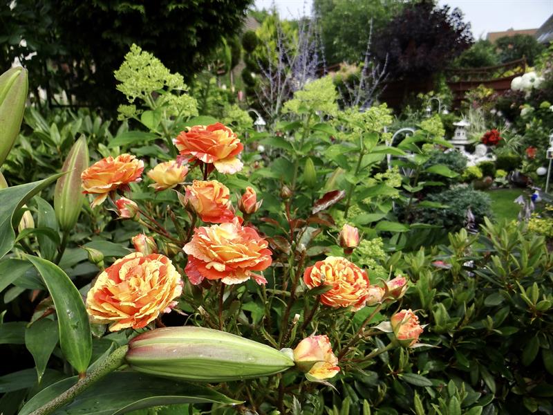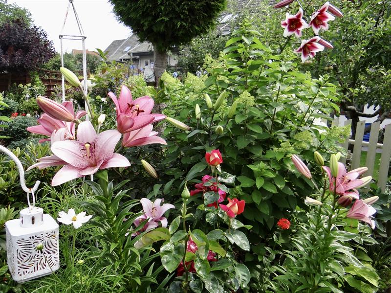 Różnorodność nasadzeń sprawia, że ogród dostarcza estetycznych wrażeń i zapachowych doznań w zasadzie cały rok. Każde z roślin w swoim czasie dodają mu uroku. Jak azalie, rododendrony, buki, klony, wiąz, jaśmin, wierzba, cyprysy, tuje, róże, hortensje, liliowce, budleja, powoje, pierisy, trzmieliny, perukowce, oleandry, berberys, hosty, żurawki, tawułki, dalie, begonie, pelargonie, kanny czy kalle. W innym czasie zaś kwiaty kleome, firletki, forsycje, goździki, sasanki, anemony, dzwonki, zimowity, petunie, surfinie, kanny. Kiedy indziej cebulice, stokrotki, zawilce, wrzosy, krokusy, żonkile, narcyzy, szafirki, hiacynty, bratki, tulipany, prymule, ranniki, przylaszczki, lawendy, barwniki, bodziszki, orliki, czosnki, chryzantemy i astry.