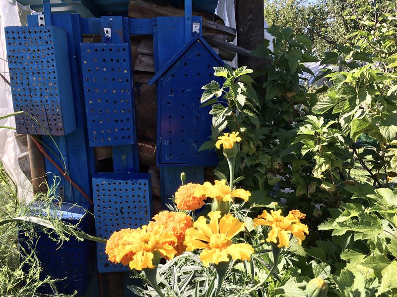 I jeszcze coś, czego w ogrodzie pana Franciszka nie sposób przeoczyć, a co w utrzymaniu takiej enklawy pełnej owoców, zieleni, warzyw i kwiatów w znakomitej kondycji odgrywa fundamentalną rolę. To własnej roboty liczne budki dla pszczół murarek, jak też w dużej liczbie budki dla ptaków rozwieszone wśród drzew.