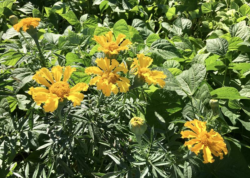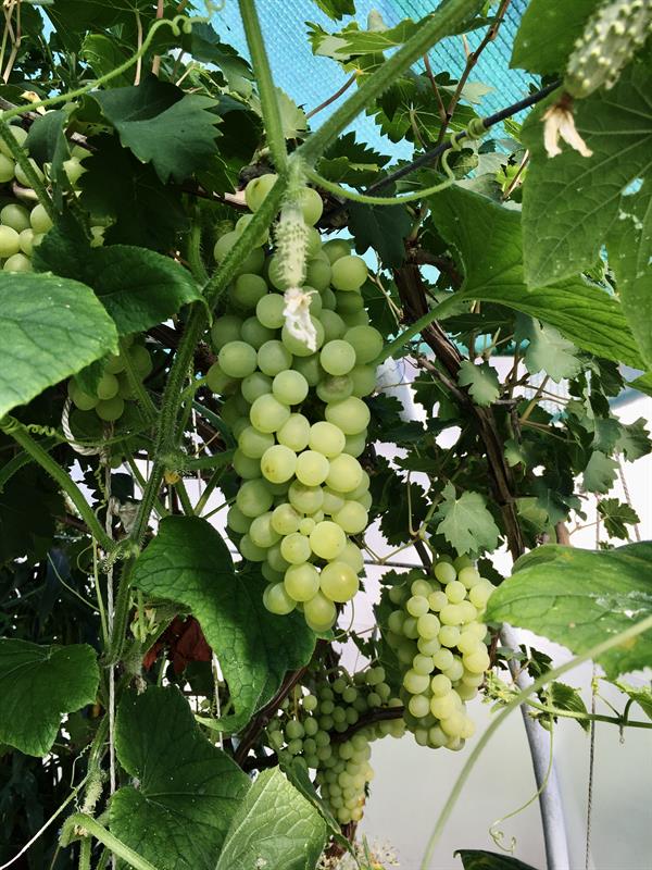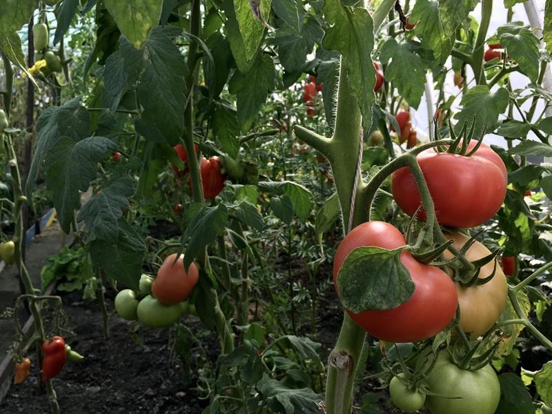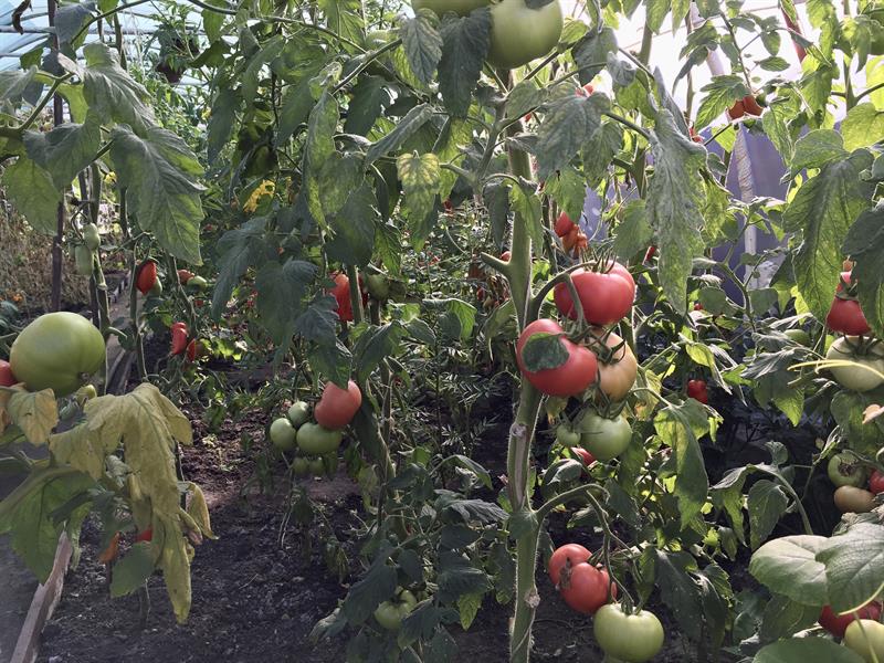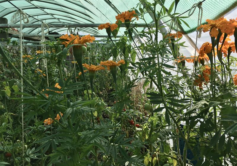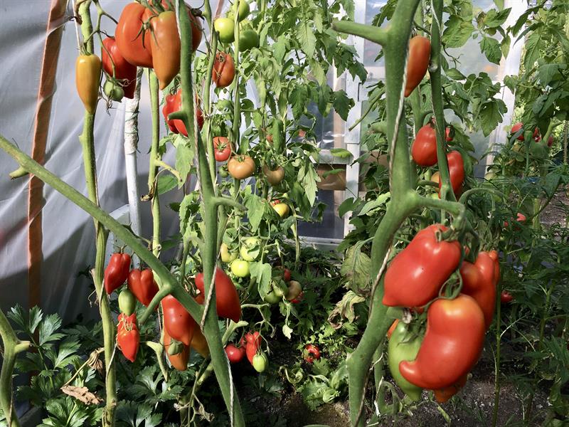 W namiocie foliowym pomidory licznych odmian, w tym: barony, paprykowe, koktajlowe, czerwona gruszka, czerwone mięsiste, bawole serca, węgierskie, inne o nazwach bekas, cornabel, manistella czy w kolorze żółtym kształtem przypominające malutkie żarówki. W tym sezonie co najmniej w dwunastu odmianach. Na sam ich widok zaczynają pracować kubki smakowe. Do tego poletko papryk równie wielu odmian z chili włącznie. I do kompletu krzewy oblepionej już kiśćmi dorodnych dojrzewających owoców winorośli. A pod nimi w gruncie m.in. rośliny – odstraszacze wszelkiego robactwa. Wśród nich seler, sałata. I niezawodne w tej roli z własnej uprawy aksamitki giganty o pomarańczowych kwiatach, dorastające – to nie przesada – do 1,8 m.