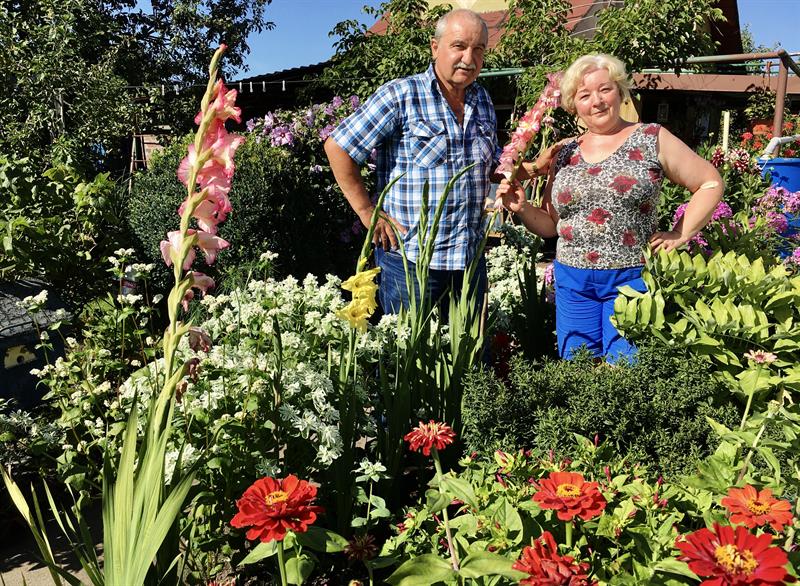 Samo wejście od furtki obsadzone szpalerami różnorodnych kwiatów, jak i tych wyglądających znad ogrodzenia, zachęca do poznania ogrodowych tajemnic tego miejsca. A cienista alejka pośrodku prowadzi wprost w okolice altany z zadaszeniem, gdzie też nie brak ciekawych okazów. Nie tylko ozdobnych roślin. Gdzie? W rozległym kompleksie Rodzinnego Ogrodu Działkowego Port Centralny na Kępie Parnickiej. A ten zielono- -kolorowy kawałek ziemi pod słońcem to od lat królestwo Heleny i Franciszka Konkolowskich.