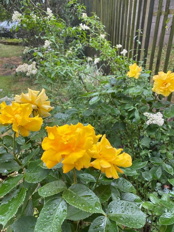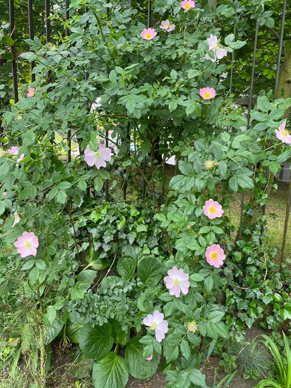 W przyblokowym ogrodzie przy Zdrojowej co i rusz pojawia się wśród nasadzeń coś nowego. Są więc ogniki, cisy, irgi , bzy, konwalie, różaneczniki, irysy, piwonie, liliowce, floksy, hibiskusy, róże i hortensje. Do tego byliny o trudnej do wymówienia nazwie jak kremantodium, trzmieliny, funkie czy yuki. A nadto przebiśniegi, fiołki i oczywiście szafrany. Po pergolach przy murach klatek schodowych pnie się glicynia.