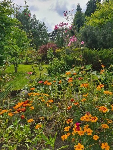 – Na naszej działce mamy jabłonie, wiśnie, grusze. Jeśli chodzi o warzywa, to pod folią rosną pomidory, ogórki oraz sałata. Jest także wiele kwiatów, hodujemy m.in.: róże, hortensje bukietowe, piwonie, magnolie, hibiskusy, rododendrony, milin amerykański – wymienia entuzjastycznie pani Maria. – Do tego można też wspomnieć o kwiatach jednorocznych: aksamitkach, cyniach, nagietkach. W naszym ogrodzie znajdują się także winogrona – dodaje działkowiczka.