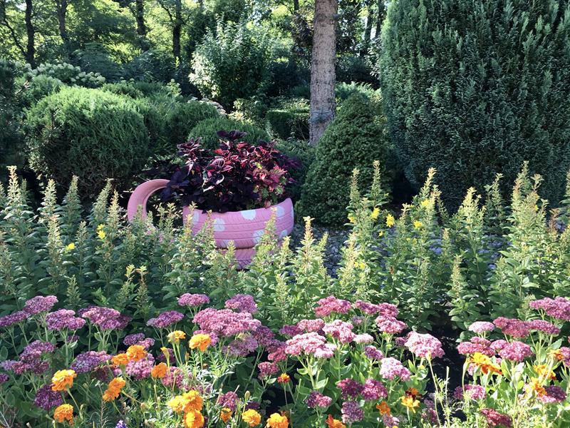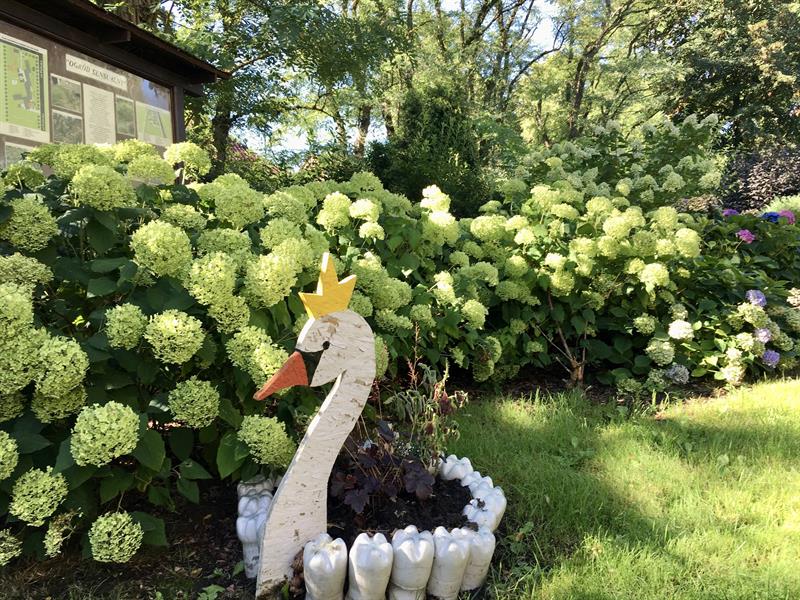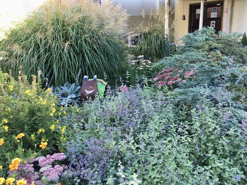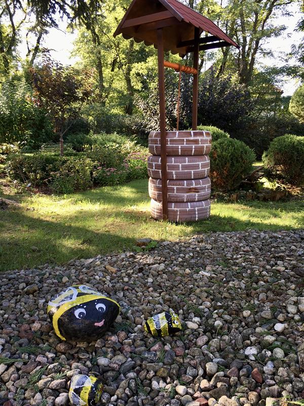 W tym roku w pejzaż przyszkolnego ogrodu zmysłów wplecione zostały elementy urozmaicające. Pojawiły się studnia, dwie spore filiżanki, ptak, ślimak, w innym zakątku na trawniku wąż. W wyrazistych kolorach wykonane z opon z odzysku. Kiedy świat roślin zamiera przed okresem zimowym także mają przyciągać i czynić otoczenie nadal atrakcyjnym nim nadejdzie znów wiosna. ©℗
