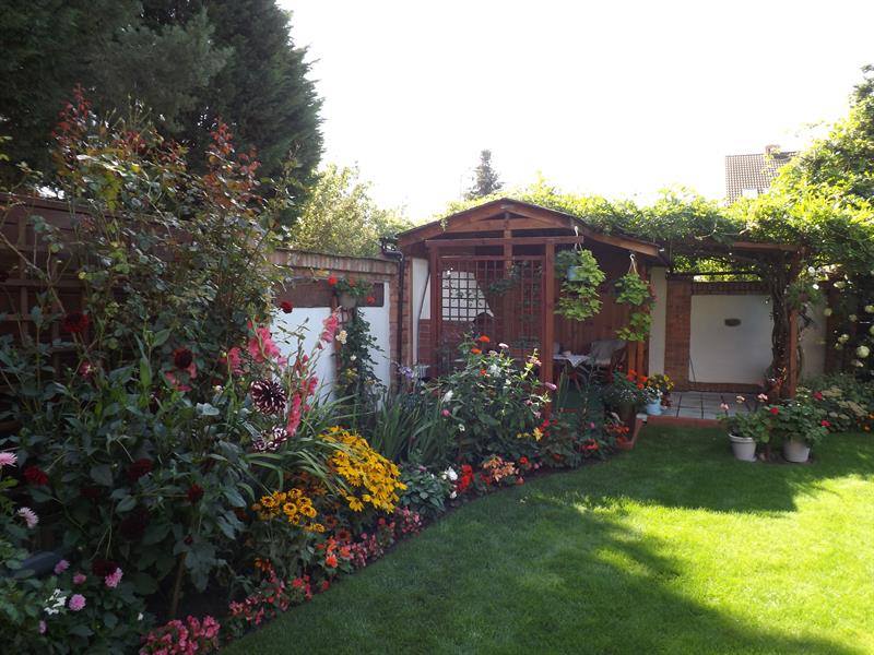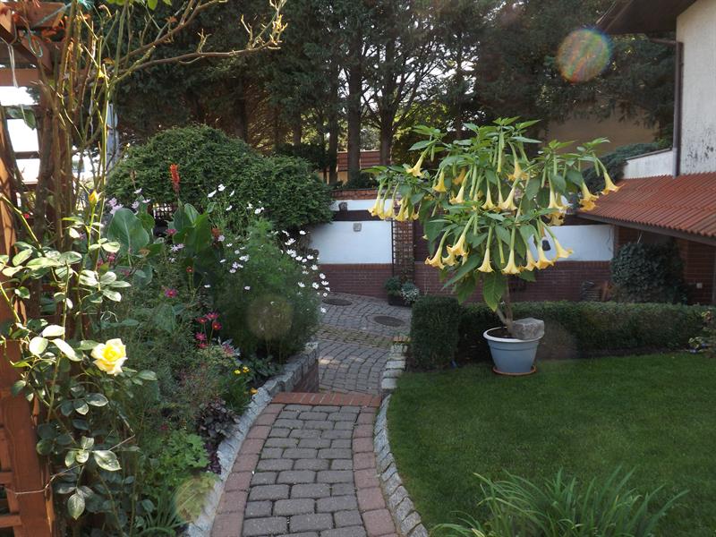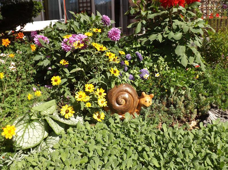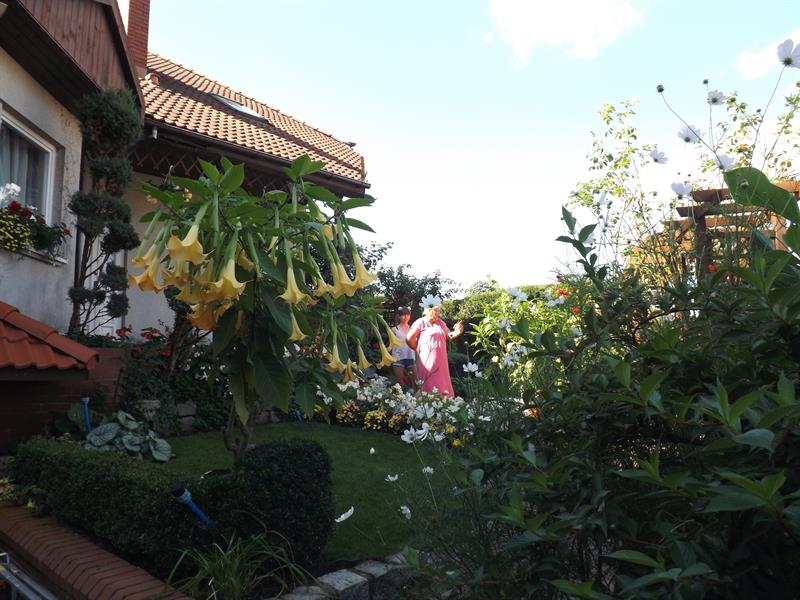 Ogród pani Grażyny jest kolorowy dzięki odpowiedniemu doborowi kwiatów. Oprócz wspomnianej wcześniej brunery (zwanej także niezapominajką kaukaską) są tam również jasnoty, dalie, chryzantemy, petunie, begonie oraz żółte i różowe datury. Kwiatów jest oczywiście znacznie więcej, a ich nadmiar właścicielka rozdaje każdemu chętnemu, bo jak sama mówi – powinny cieszyć również innych.