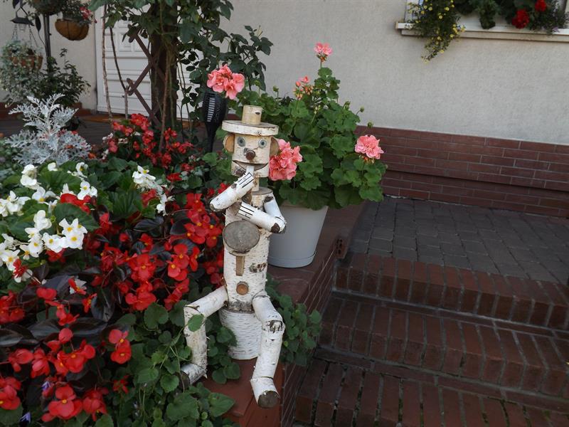 Różnych postaci jest w ogrodzie znacznie więcej. Jest i grajek wykonany z drzewa brzozy i śmiejący się budda, będący symbolem szczęścia i pomyślności. Jest także łoś, żaba oraz żółwie i ślimaki. Wszystkie są ozdobą ogrodu, w którym latem zbiera się rodzina.