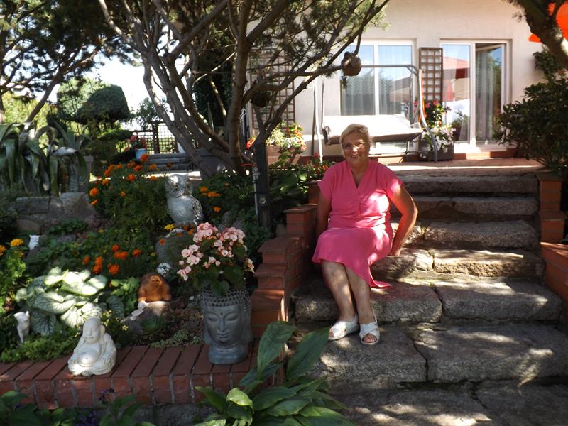 Pora na prezentację kolejnej finalistki. Jest nią p. Grażyna Łoś, którą, podobnie jak w zeszłym roku, zgłosiły do konkursu koleżanki. A trzeba przyznać obiektywnie, że było co zgłaszać, bo ogród robi imponujące wrażenie i widać mnóstwo włożonej pracy w jego utrzymanie.