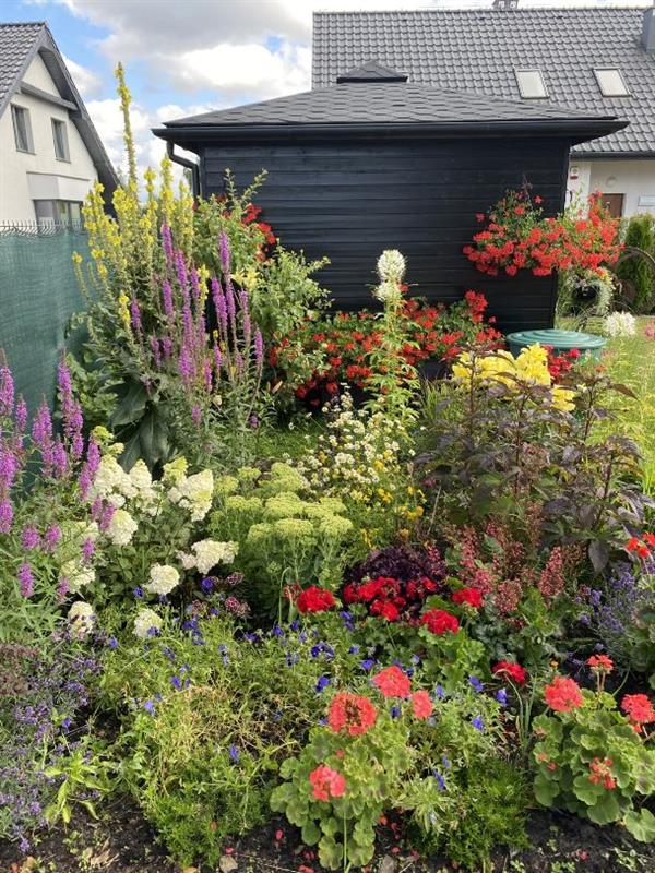 – Za jego aranżację zabrała się żona – mówi pan Dawid. – Obecny wygląd ogrodu zawdzięczamy żonie, która spędza w nim każdą wolną chwilę.