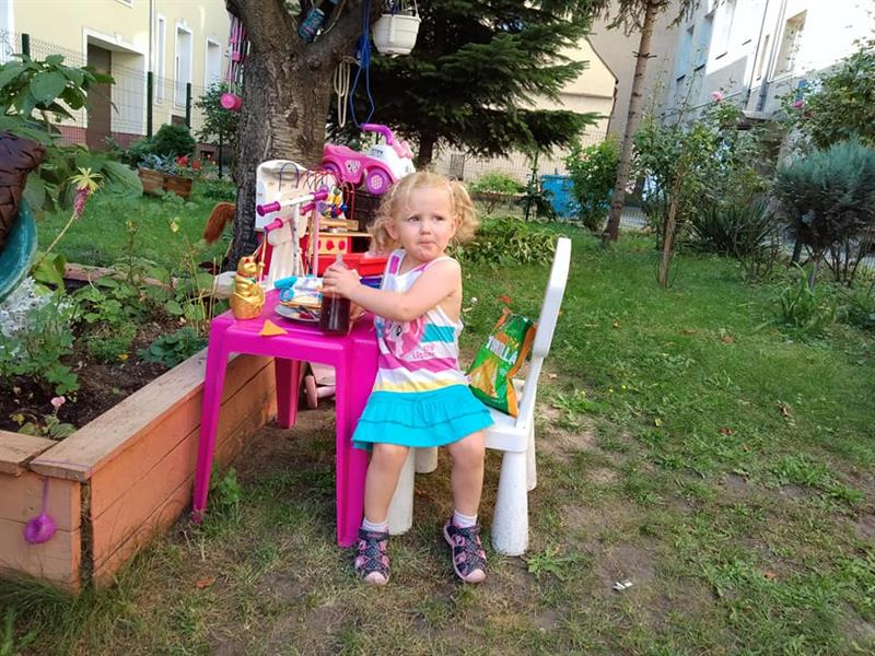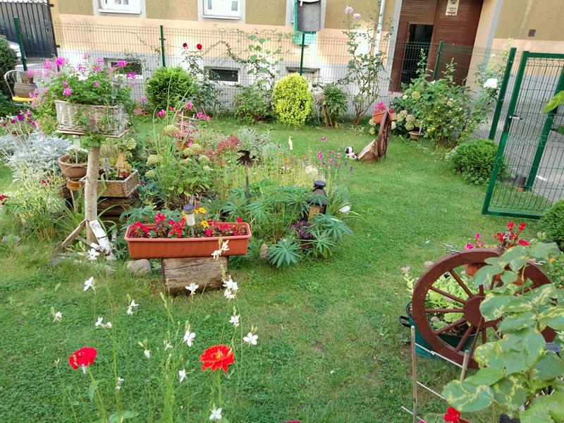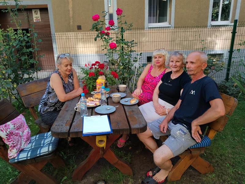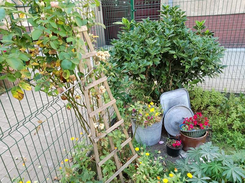 Pomału, pomału podwórko przechodziło metamorfozę. Z brzydkiego kaczątka stawało się miejscem, gdzie chętnie przesiadują sąsiedzi. Ktoś zrobi kawę, ktoś inny upiecze ciasto. Ktoś inny posadził kwiaty i wspólnie zadbano o wystrój. Główną „dekoratorką” podwórka jest Ewa Kolska. To ona poprzynosiła różne przedmioty, które podwórkowemu ogrodowi nadają klimat. To od niej jest biały rower damka.