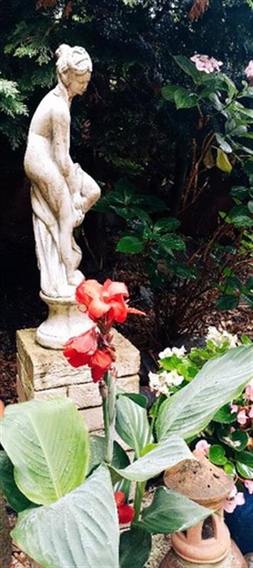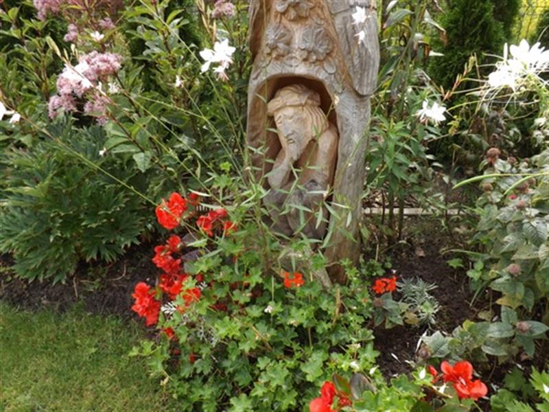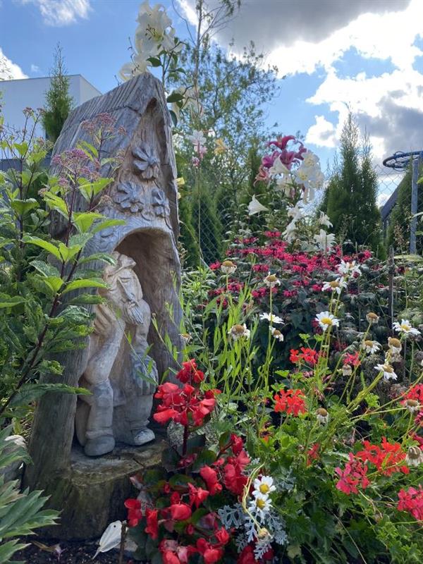 W ogrodzie państwa Piesowiczów zwracają uwagę nie tylko rośliny, ale również różnego rodzaju elementy dekoracyjne. Są nimi maszyny, jest także rzeźba Jezusa Frasobliwego oraz donice i oświetlenie. Wszystkie te formy dekoracyjne urozmaicają przydomowy ogród, stając się doskonale wkomponowanym w otoczenie motywem przewodnim poszczególnych jego części.