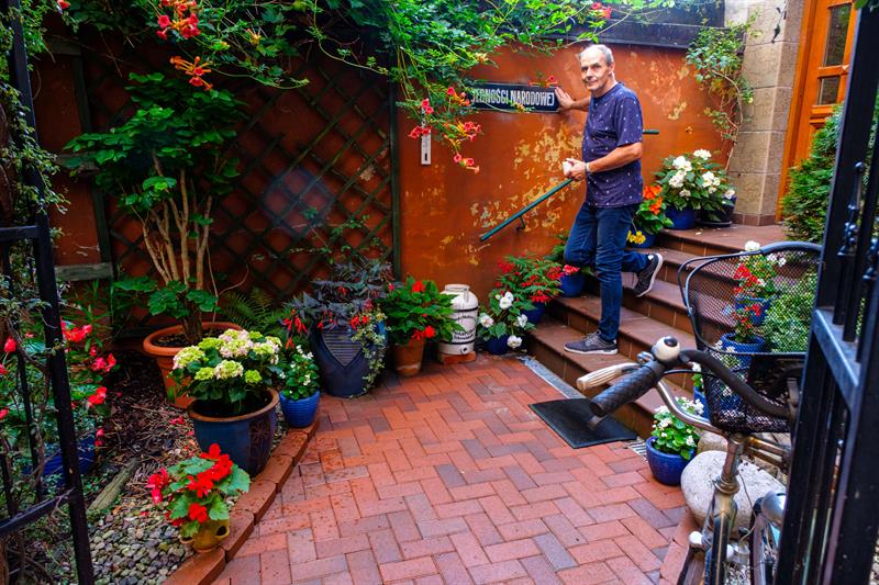 – Tu dorastałem i mieszkam do dziś – mówi laureat pierwszego miejsca w kategorii inne formy zagospodarowania terenu zielonego tegorocznego konkursu. – Nie zawsze to miejsce wyglądało tak jak teraz. Zamiast kwiatów i trawy był beton, a pod murem odgradzającym od sąsiedniego podwórka stała dawna stajnia dla koni służąca przez lata za składzik – wspomina.