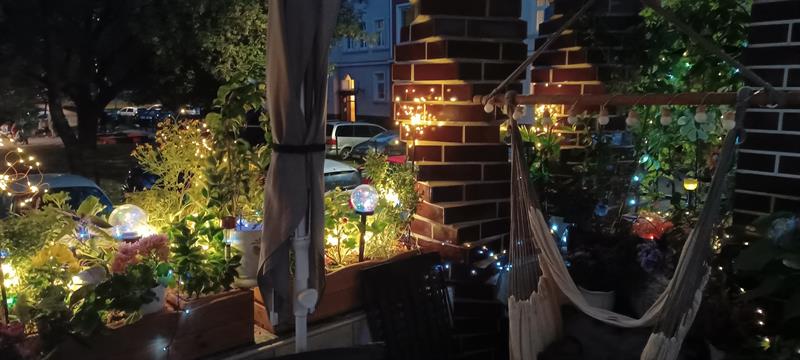 – Fakt, mąż ogląda mecze, a ja w hamaczku się relaksuję – komentuje pani Elżbieta. – Uroda sezonowych kwiatów szybko mija. Ale sierpień to mój ulubiony czas w naszym letnim salonie. Wciąż ciepło, a zmrok szybciej zapada. Dzięki temu możemy spędzać na nim długie wieczory w otoczeniu świecących girland i lampionów: bardzo nastrojowo, romantycznie.