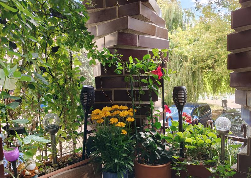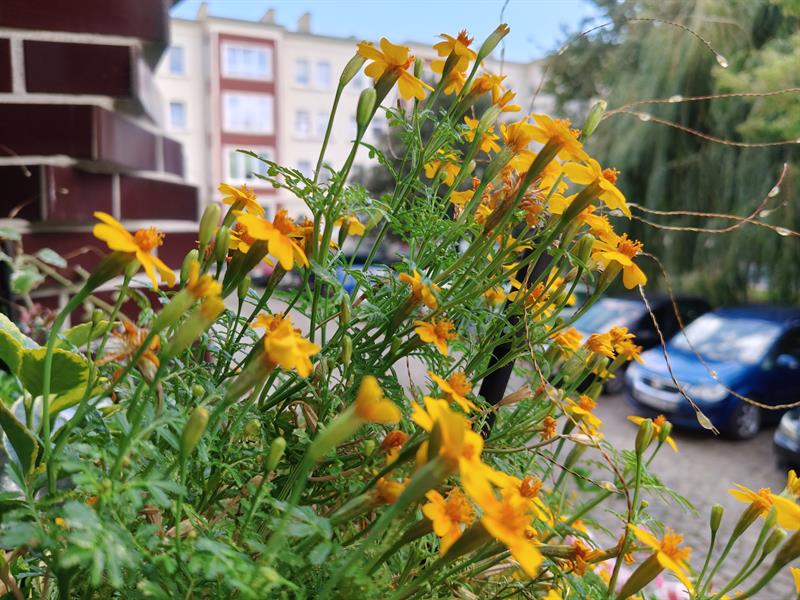 – Moimi ulubionymi kwiatami są hortensje. Mieliśmy ich kilka, ale wyjechaliśmy, powierzając opiekę nad balkonową zielenią sąsiadce. Bardzo się tym zadaniem przejęła i zaledwie jedna z hortensji jej obfite podlewanie przetrwała, pozostałych uratować się nie dało – przyznaje pani Elżbieta. – Lubię też aksamitki wąskolistne. Hoduję je, jak wiele pozostałych balkonowych kwiatów i pnącz, z nasion, samodzielnie robiąc wiosenne rozsady, co sprawia mi sporą przyjemność. Podobnie jak łączenie roślin kolorami: biel z różem i czerwienią, a do tego żółcie i pomarańcze. Lubię też błękity, stąd lobelie i hortensje właśnie w tej barwie. Staram się łączyć energetyczne kolory z chłodnymi, aby balkon tętnił ich różnorodnością.