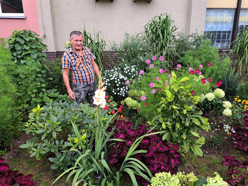 – Kto nie kocha kwiatów? – pyta retorycznie pan Tadeusz. – Każdy ma jakieś zainteresowania. Jedni hodują rybki, inni zbierają grzyby. Z tym ogródkiem to tak się zaczęło, bo po prostu przykro było patrzeć na to, co tu się działo. Z sąsiadem chcieliśmy zmienić to miejsce. Chętnych było dużo, tylko pracować nikt nie chciał. Pierwsze kwiaty zaczynają kwitnąć w marcu – to oczywiście krokusy. Różne kwiaty kwitną w różnym czasie. Hortensje i pelargonie będą piękne nawet we wrześniu. Mamy tutaj także kwiat o nazwie kosmos, inaczej onętek. To ta roślina o kolorowych kwiatach i drobnych listkach.