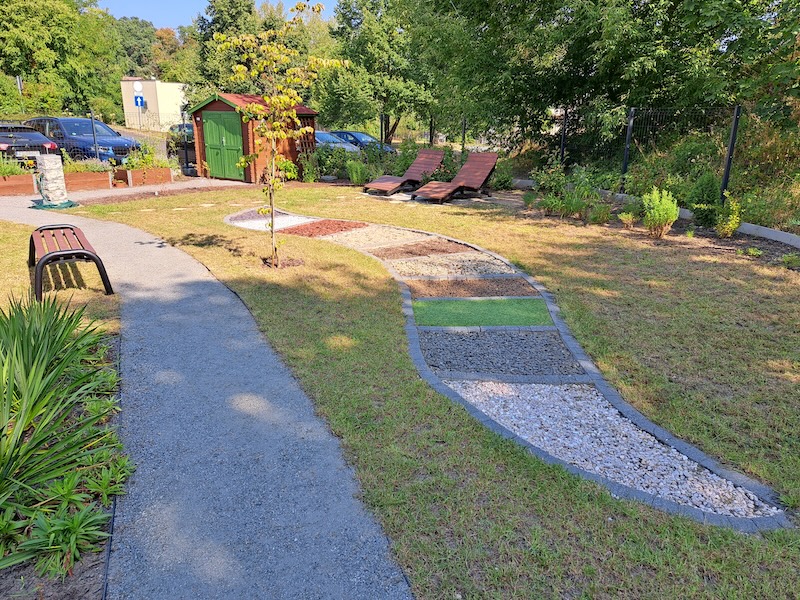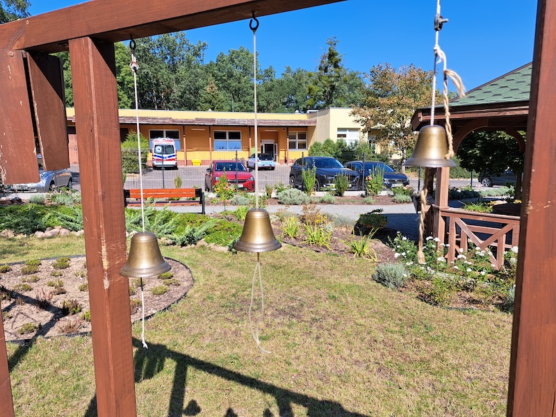 - Jako pierwsza powstała altana. Później pojawiały się kolejne elementy. Ten teren aż prosił się o to, aby stworzyć na nim ogród. Otrzymaliśmy dotację z Wydziału Zdrowia Urzędu Marszałkowskiego. Dużo nam pomogła firma Leroy Merlin, która dała nam rośliny. Sadzonki przynoszą też pacjenci. Nie każdy ogród jest ogrodem terapeutycznym. Oczywiście środowisko naturalne działa na nas. Wszyscy chodzimy do parku, do lasu. Wtedy czujemy, że stres się zmniejsza. Natura ma wpływ na nasz ogólny dobrostan. Ogród terapeutyczny to coś jeszcze o krok dalej. Nasz ogród jest ogrodem sensorycznym. To znaczy, że oddziałuje na zmysły. Służą temu odpowiednio zaprojektowane nasadzenia, ścieżka muzyczna, czy strefa smaku. Jeśli chodzi o rośliny, miejsca ich zasadzenia wybierali często pacjenci. Jeden z nich, który był ogrodnikiem z wykształcenia wyznaczył nawet ścieżki i ułożył ich obrzeża ze specjalnych do tego przeznaczonych elementów.