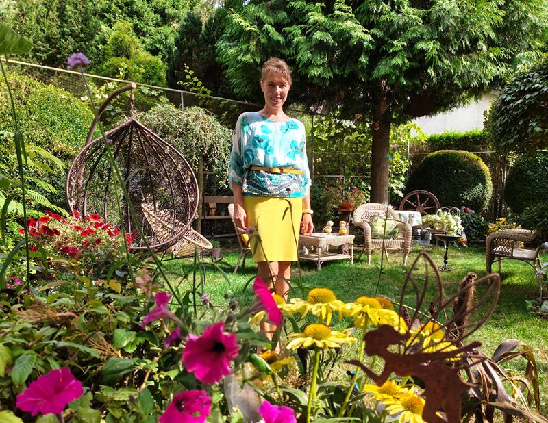 Mówi o ogrodzie, że jest „wielowątkową opowieścią, podróżą w czasie i buntem przeciwko urbanistycznej betonozie”. Idylliczną i pełną niespodzianek. W jakiej jest miejsce nie tylko dla rodzinnych spotkań, ale też mnóstwa bajkowych postaci. Gościnnej tyleż dla kotów i psów, ileż dla ptaków.