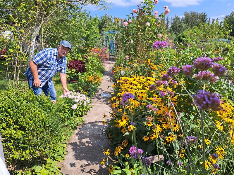 Spotkanie z panem Franciszkiem Konkolowskim zaczęliśmy od wizyty na posesji Wspólnoty Mieszkaniowej „Podkowa" przy ul. Legionów Dąbrowskiego 3 w Szczecinie. Po przejściu przez bramę prowadzącą na rozległe podwórze oczom ukazuje się ogród pełen kwiatów. O zielony teren dba pan Franciszek razem z żoną.