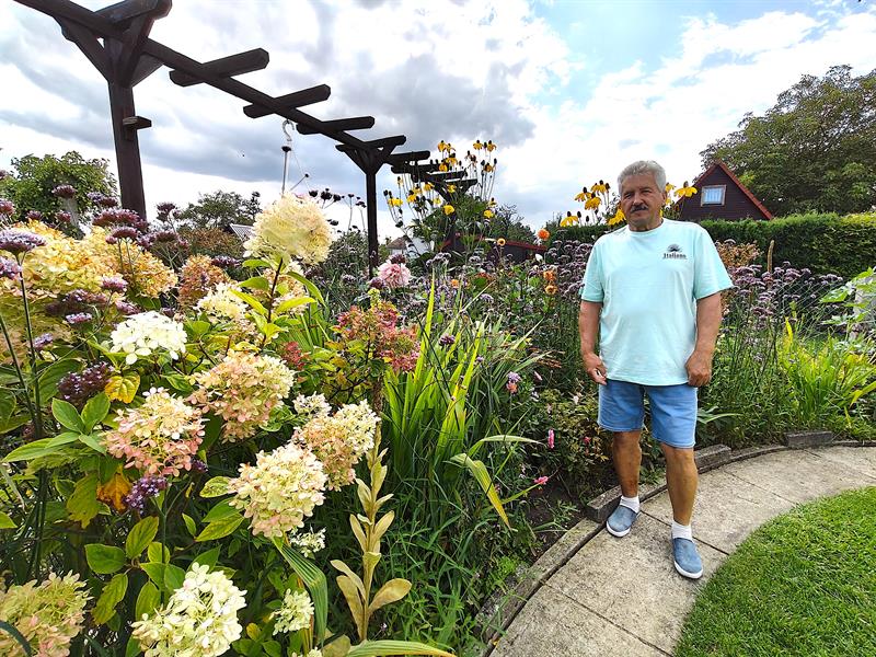 Wiernym kibicem, dla którego wytchnieniem jest jeden z najpiękniejszych rodzinnych ogrodów „Jutrzenki”, jest pan Henryk Gurtowski.