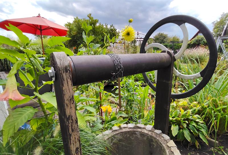 ROD „Jutrzenka" zajmują odległą od centrum część Wyspy Puckiej. Tutejszym działkom więc susza nie straszna, przeciwnie. Na działce p. Henryka funkcjonuje system tzw. małej retencji: odbierający nadmiar wody opadowej, a zasilający oczko wodne i uprawy w przypadku długotrwałych upałów.