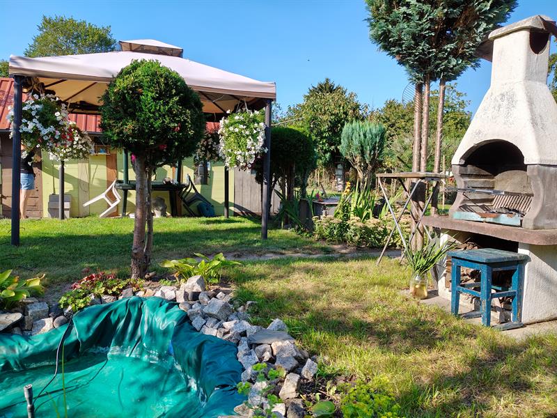 Ogród jest na tyle rozległy, że można w nim urządzić nie tylko strefę rekreacyjną. Pani Anna założyła więc warzywnik i zielnik. W pierwszym rosło wszystko: od marchwi, pietruszki, selerów i porów, przez ogórki, pomidory, buraczki, groch i fasolę, aż po cukinie, kalarepy i ziemniaki. Zielnik natomiast wciąż dostarcza świeżych listków bazylii, mięty, tymianku, szałwii, oregano, rozmarynu, a też bulw topinamburu. Sporą miejsca zajmują również owocowe drzewa i krzewy. Już za p. Anną są zbiory agrestu, jagody kamczackiej i porzeczek, a czekają na skosztowanie dojrzewające winogrona, jeżyny, a nawet białe maliny.